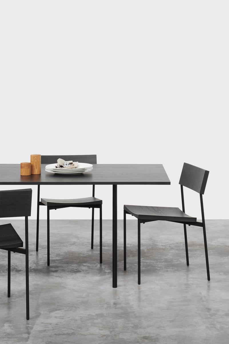 Chair HENNING with its minimal and linear silhouette unifies a shaped solid wood seat and backrest with powder-coated steel or brushed stainless steel frame. HENNING is a comfortable and elegant stackable chair that serves various interior purposes.
