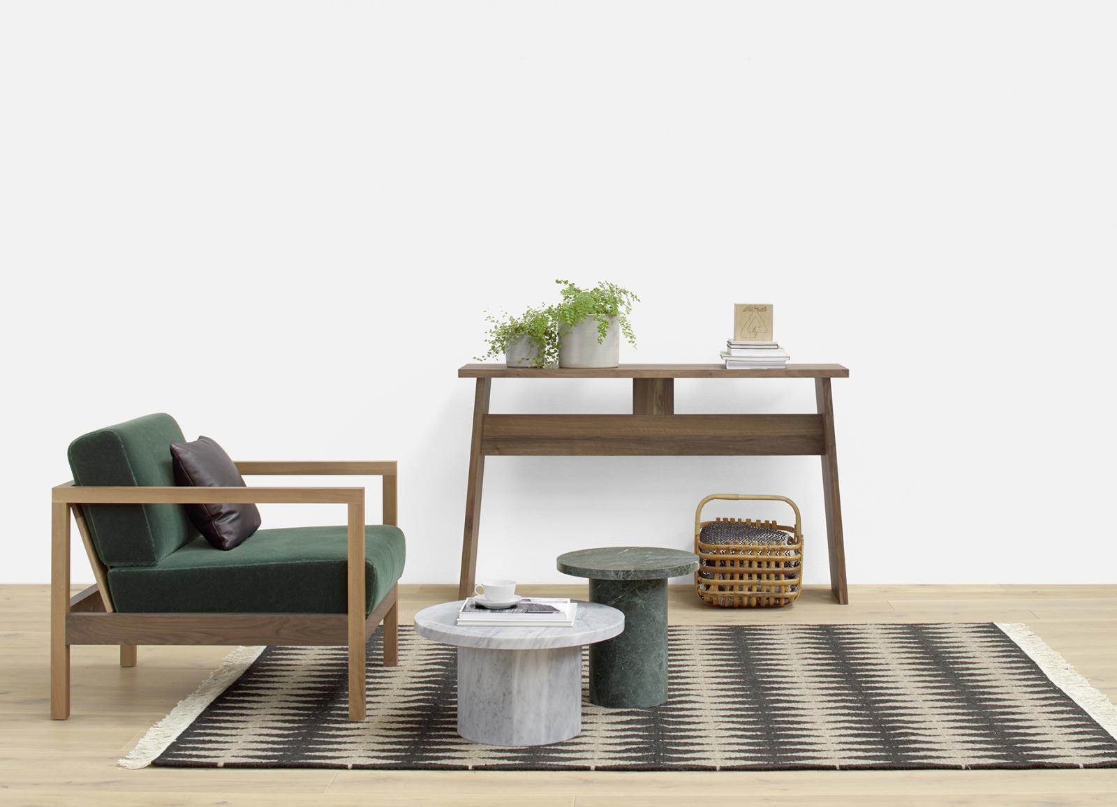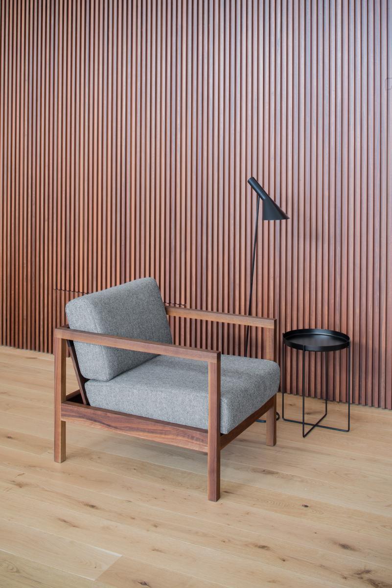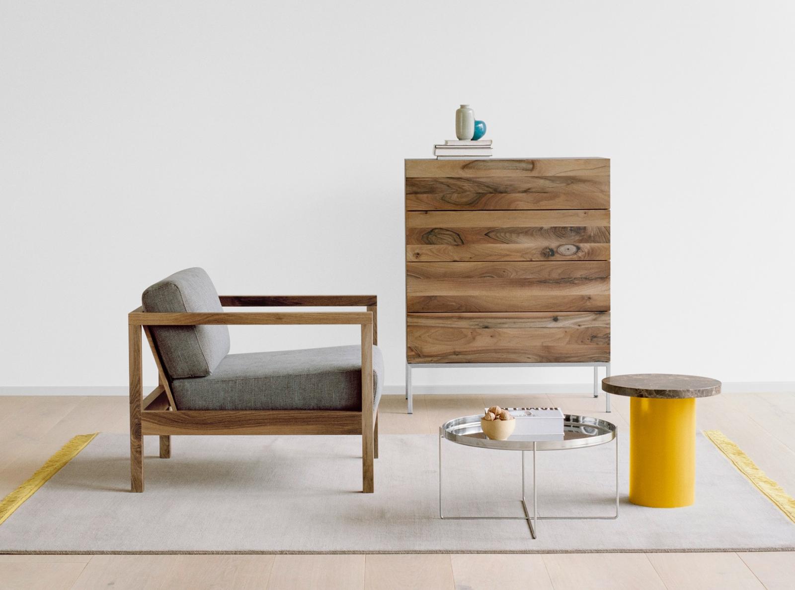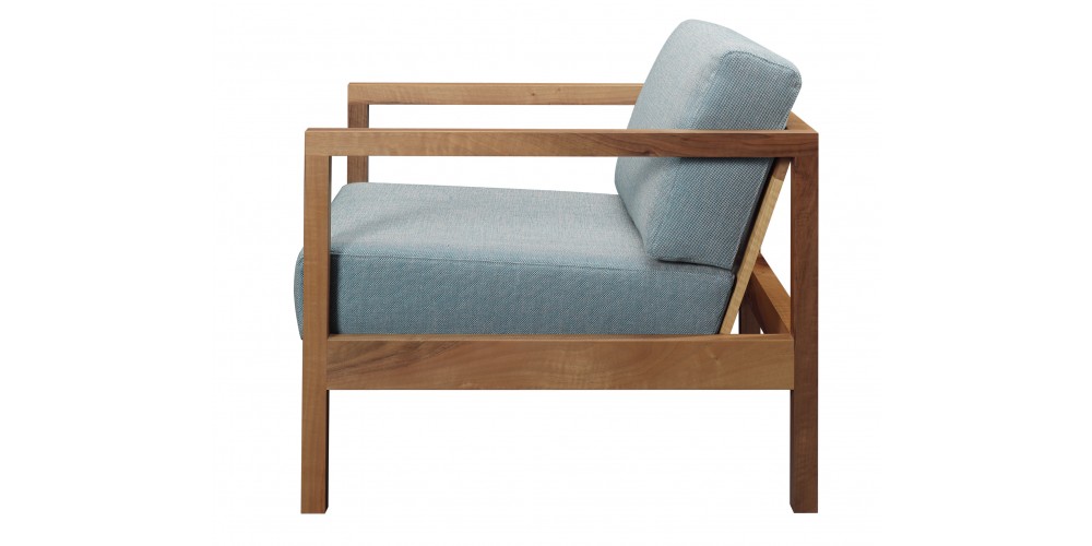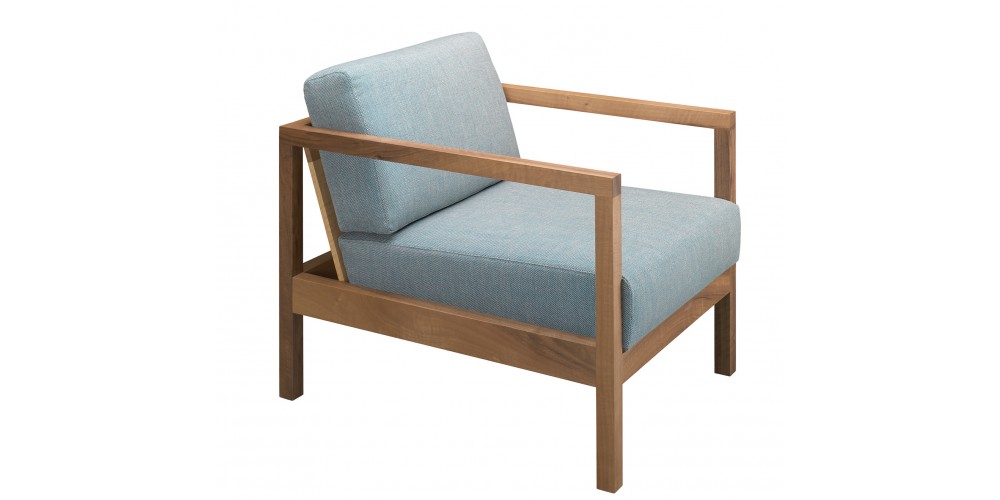 The armchair BYRON with its clear lines and distinctive armrests resembles a modern take on a classic smoking chair. BYRON has a classic wooden construction with a solid wood material thickness of 40 MM (1 5/8 INCH). Comfortable seating is ensured with upholstery belts and high quality foam. The armchair BYRON is made from oiled European oak or European walnut. For greater style and comfort, the armchair can be complemented with the cushion NIMA. A versatile and unique item for private and public use, BYRON complements amongst other items, the sofa SHIRAZ. Its seat height is 400 MM (15 3/4 INCH). There are no fixed upholstered elements as the cushions can be removed and are therefore easy to clean. The armchair is delivered as one piece.