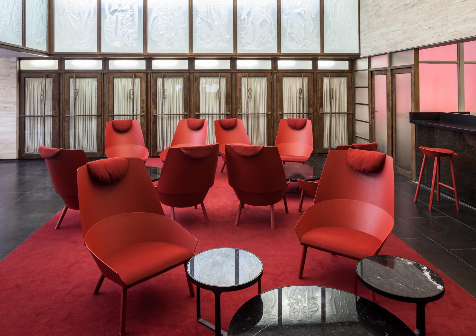 The lounge chair EUGENE makes an inspiring link to the chair family HOUDINI through its unique appearance and construction. With its high back, wide, deep seat shell and sloped back legs this generously proportioned lounge chair exudes lightness and leisure. Made from flexible oak-veneered lacquered plywood, EUGENE can be complemented with the seat cushion EUGEN S and cushion NIMA. Fixed upholstery of the seat is possible but due to its round bent wooden back, EUGENE offers ample comfort even without padding. The lounge chair EUGENE is a versatile and unique item that is ideally suited for private and public interiors.