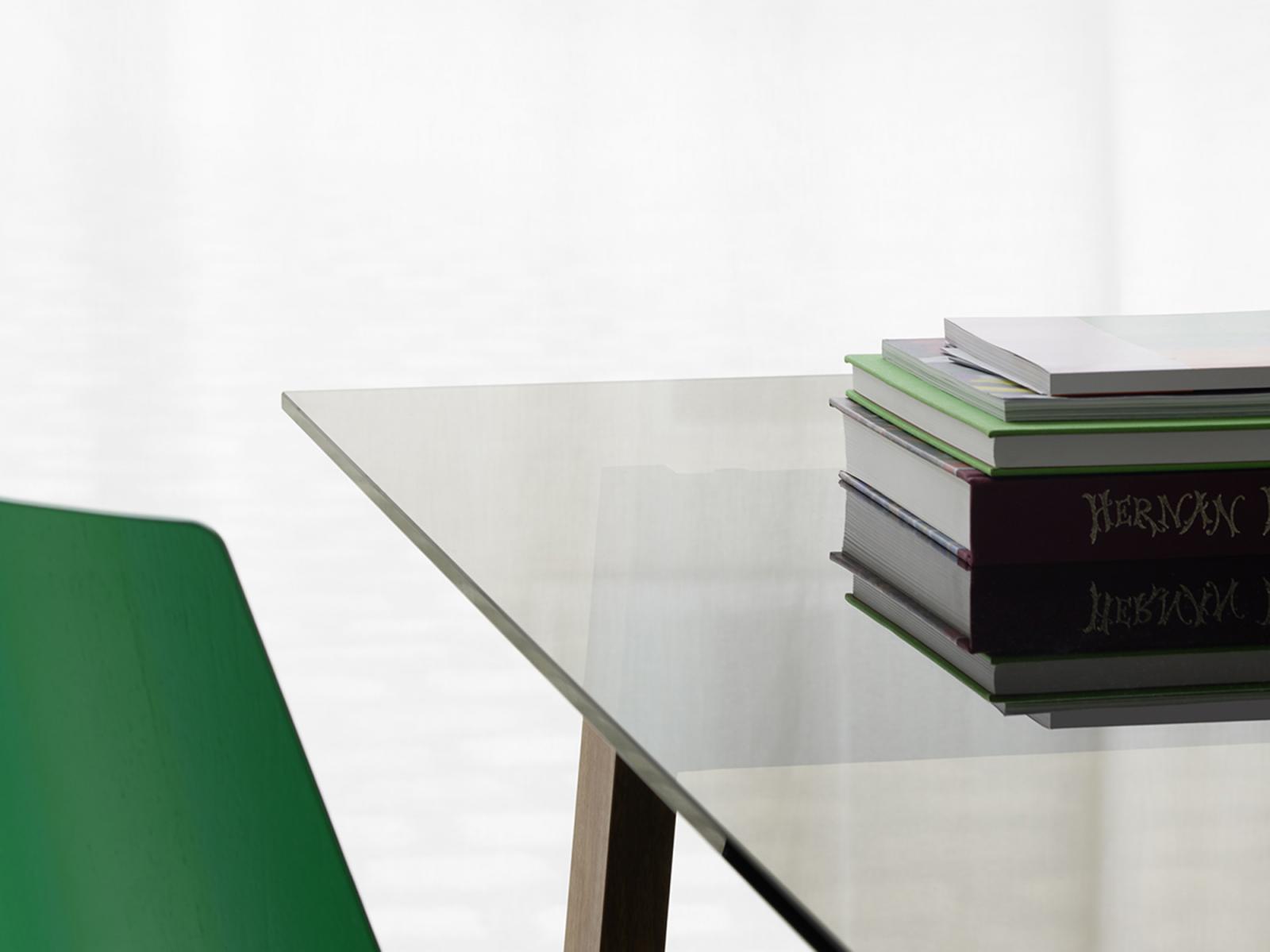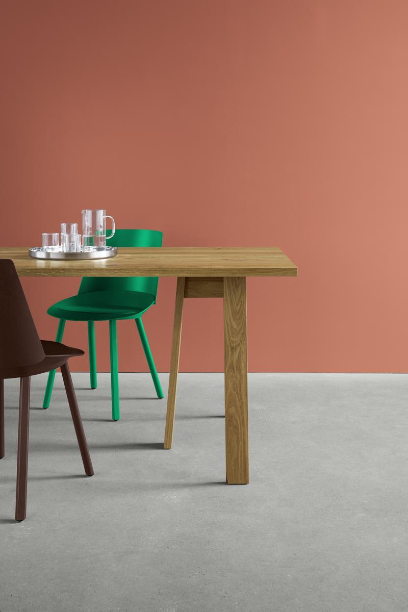 e15 continues its collaboration with David Chipperfield with trestle table BASIS. The simple and qualitative design of the solid wood trestles constructed with traditional joinery techniques showcases a broad range of materials and flexible solutions for living and working. Table tops are available separately in solid wood, glass and solid core HPL.