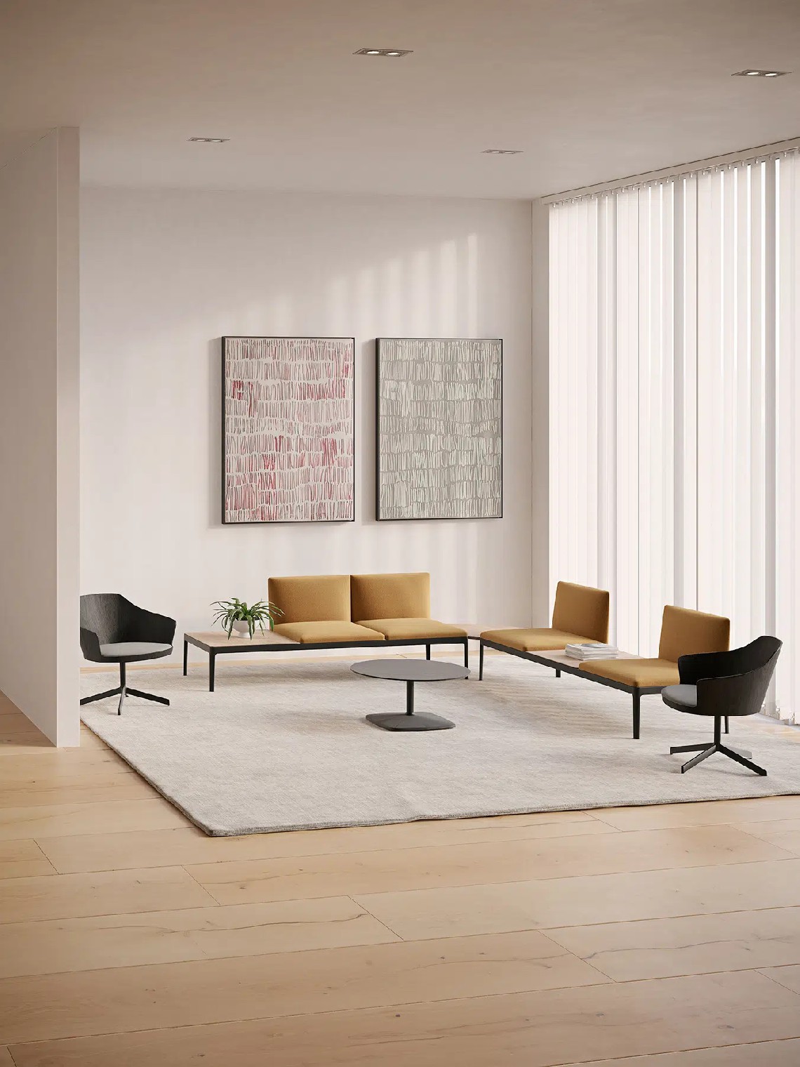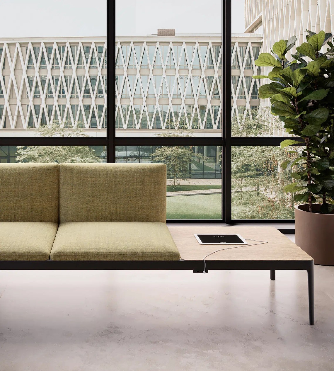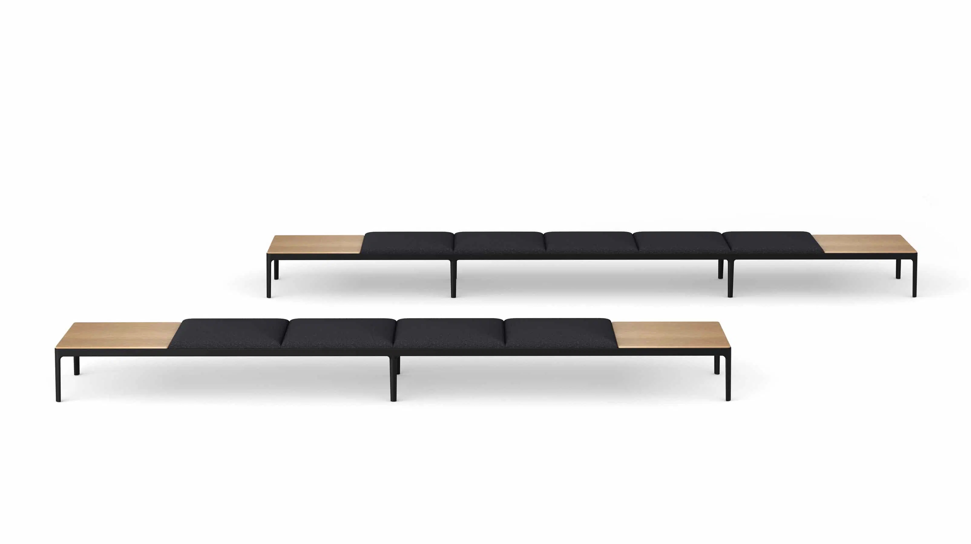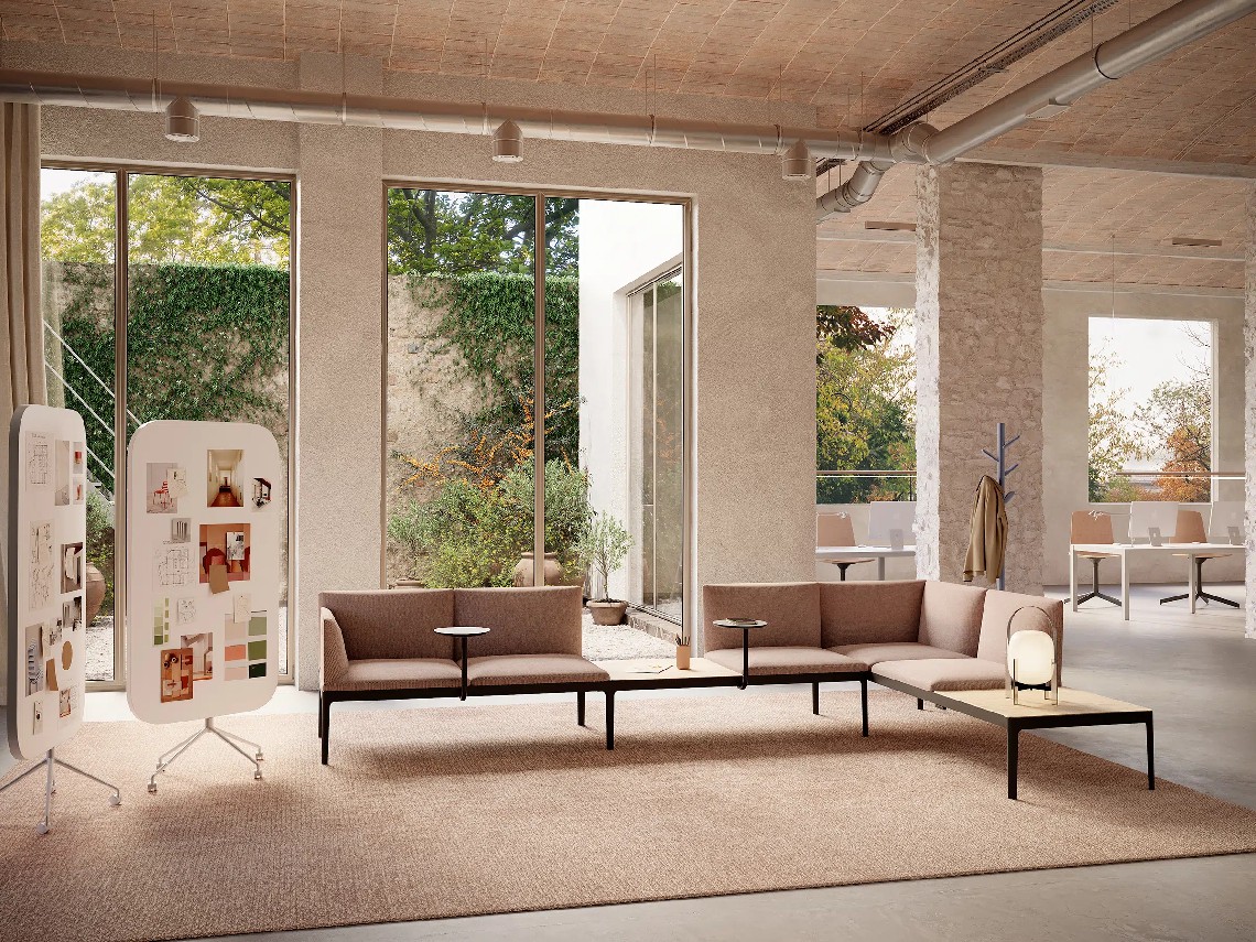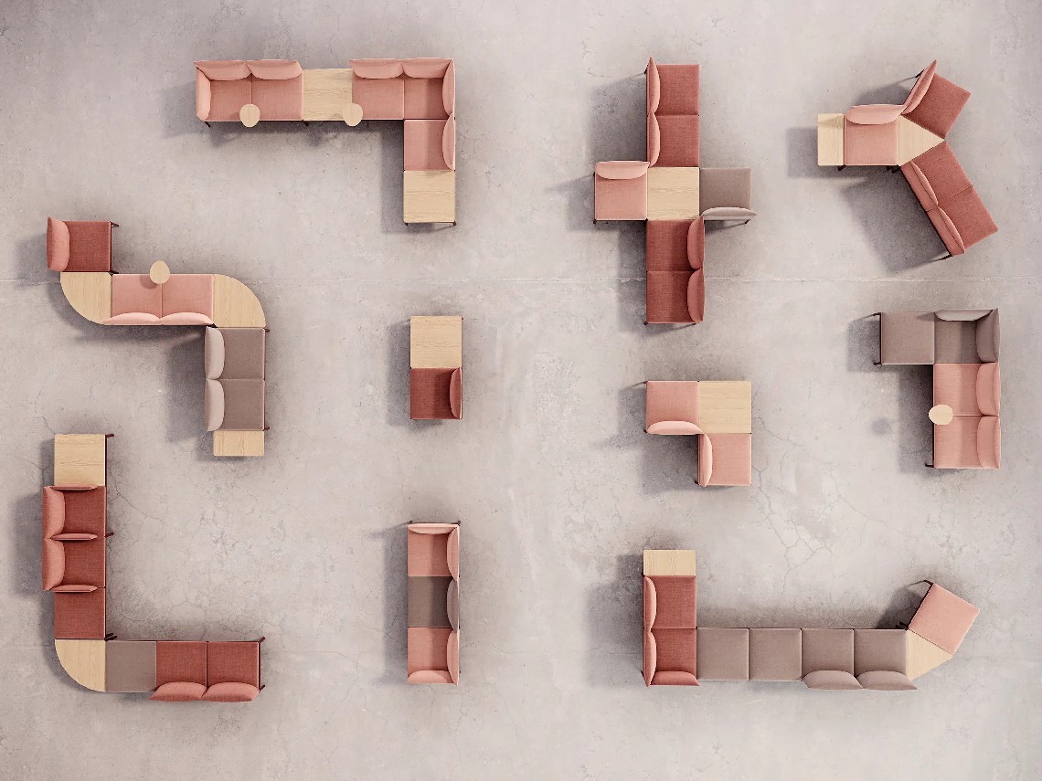 Kubika is a modular seating system that allows to create unlimited configurations through individual modules and accessories that are easily assembled. Its versatility and sophisticated design with simple lines allow adapting to any environment and need. It consists of seats with or without backrest, intermediate arms and table dividers. All the seats can be upholstered in all range of finishes and they are placed in a lacquered steel frame connected on different aluminum legs.
