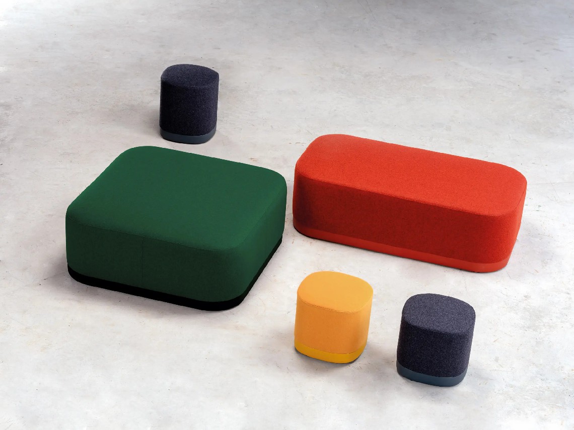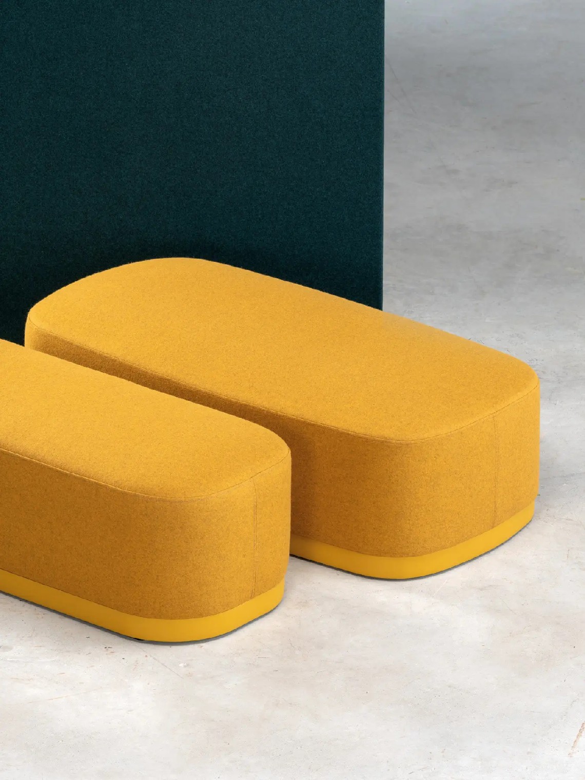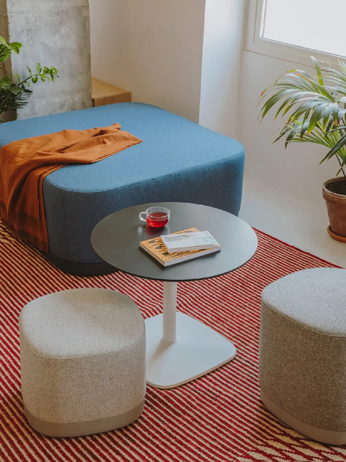 The Puck lounge has an aluminium base lacquered in any of our colours. The seat can be upholstered in one or two fabrics and that the reason why it is possible to combine one, two or three tones in the same lounge. Available in three different sizes, this model is perfect for waiting areas and hotels because unique compositions can be made by using different lounges.