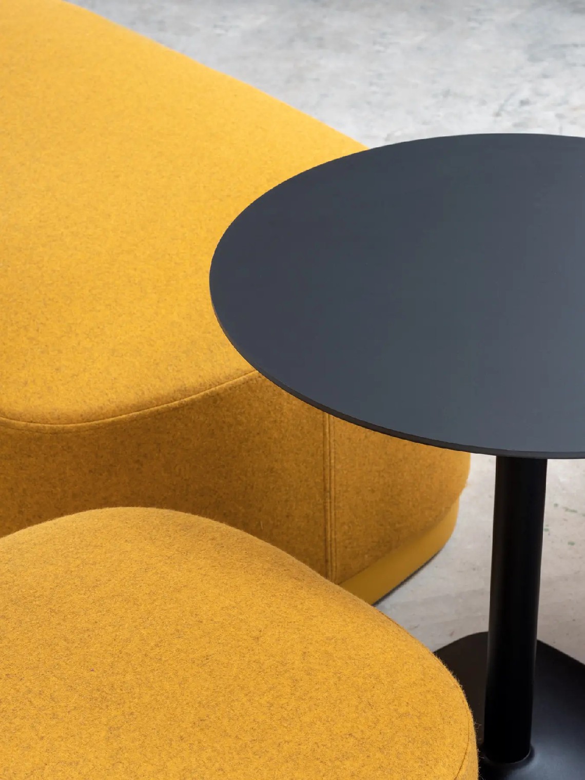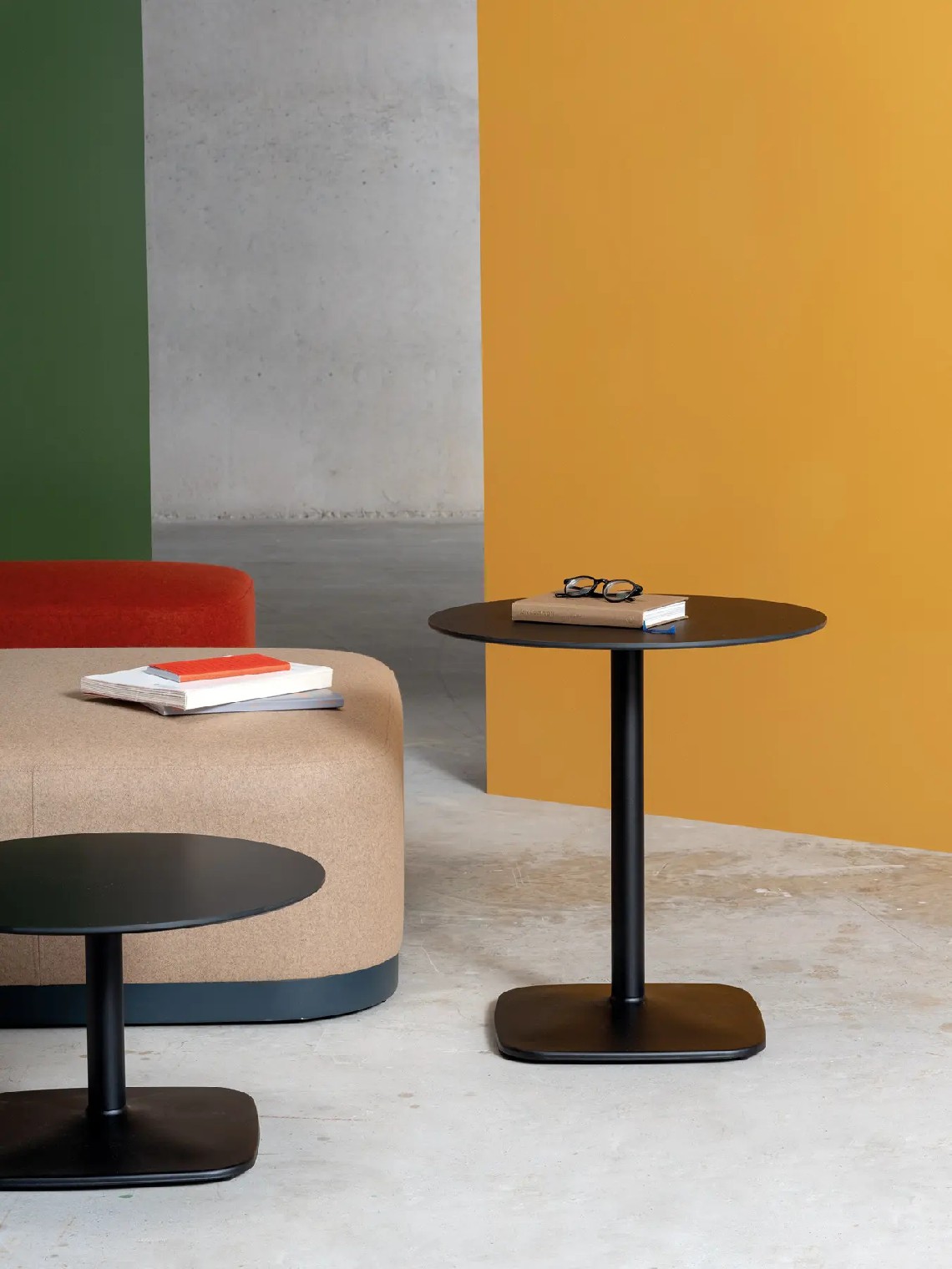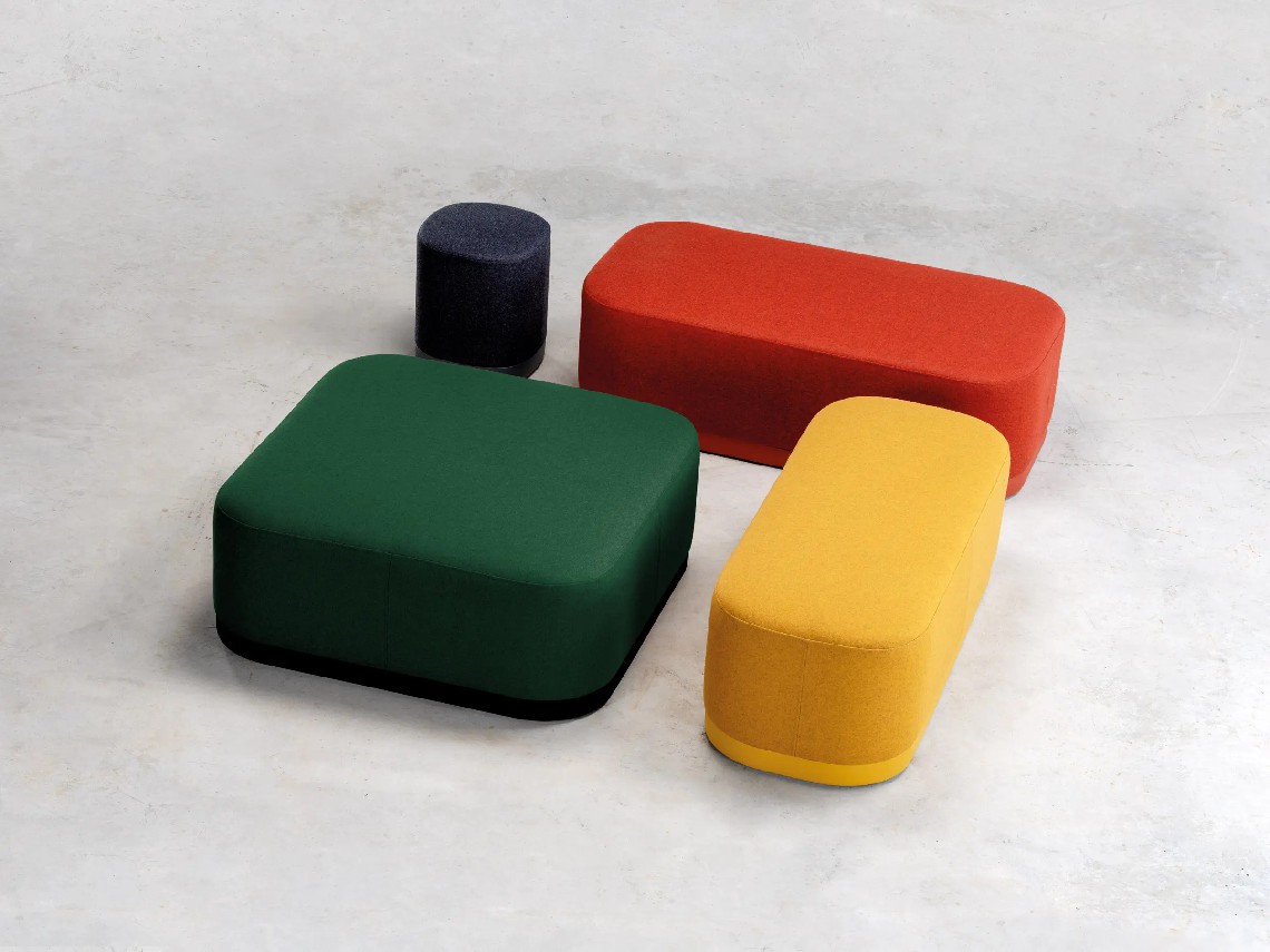 The Puck lounge has an aluminium base lacquered in any of our colours. The seat can be upholstered in one or two fabrics and that the reason why it is possible to combine one, two or three tones in the same lounge. Available in three different sizes, this model is perfect for waiting areas and hotels because unique compositions can be made by using different lounges.
