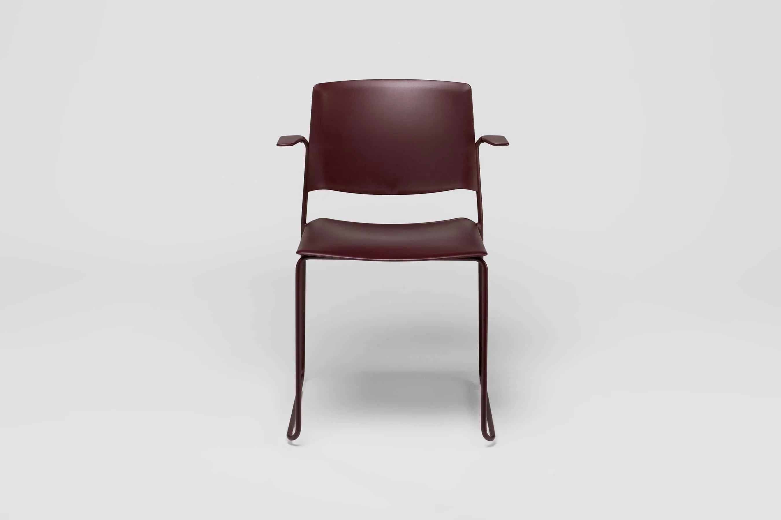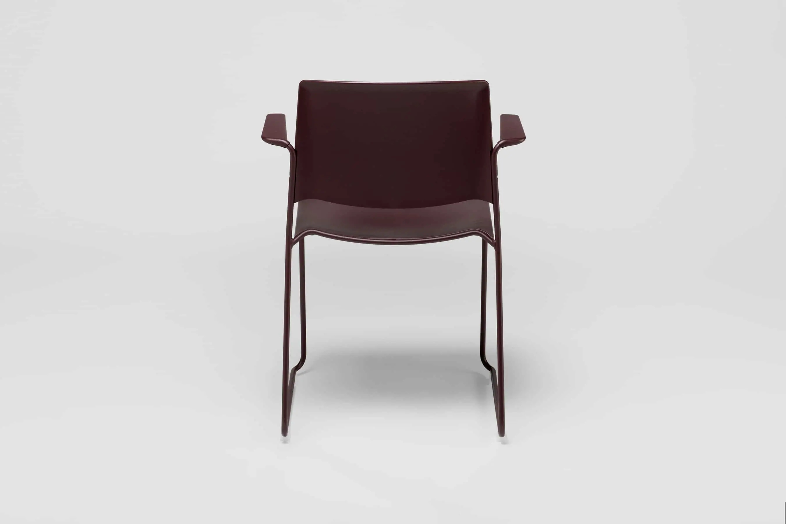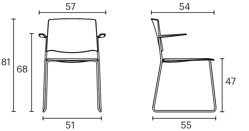 Ema chair with open backrest and arms is strong and lightweight and that allows to stack up to 45 units, which makes it perfect for all kind of spaces, in special for contract sector. The sledge steel structure and the aluminium arms can be chromed/polished or lacquered in any of our colours and the seat and backrest are available in polypropylene or upholstered. Besides, it has an upholstered seat pad available, which is very useful for multipurpose or crowded spaces, improving stacking by causing less friction than the full upholstery version. In this case, the stackability reaches up to 20 units on the trolley and 15 units on the floor.