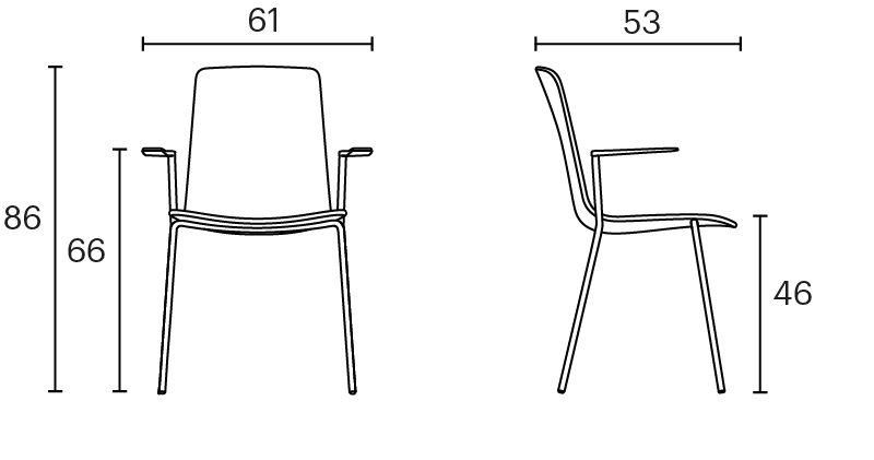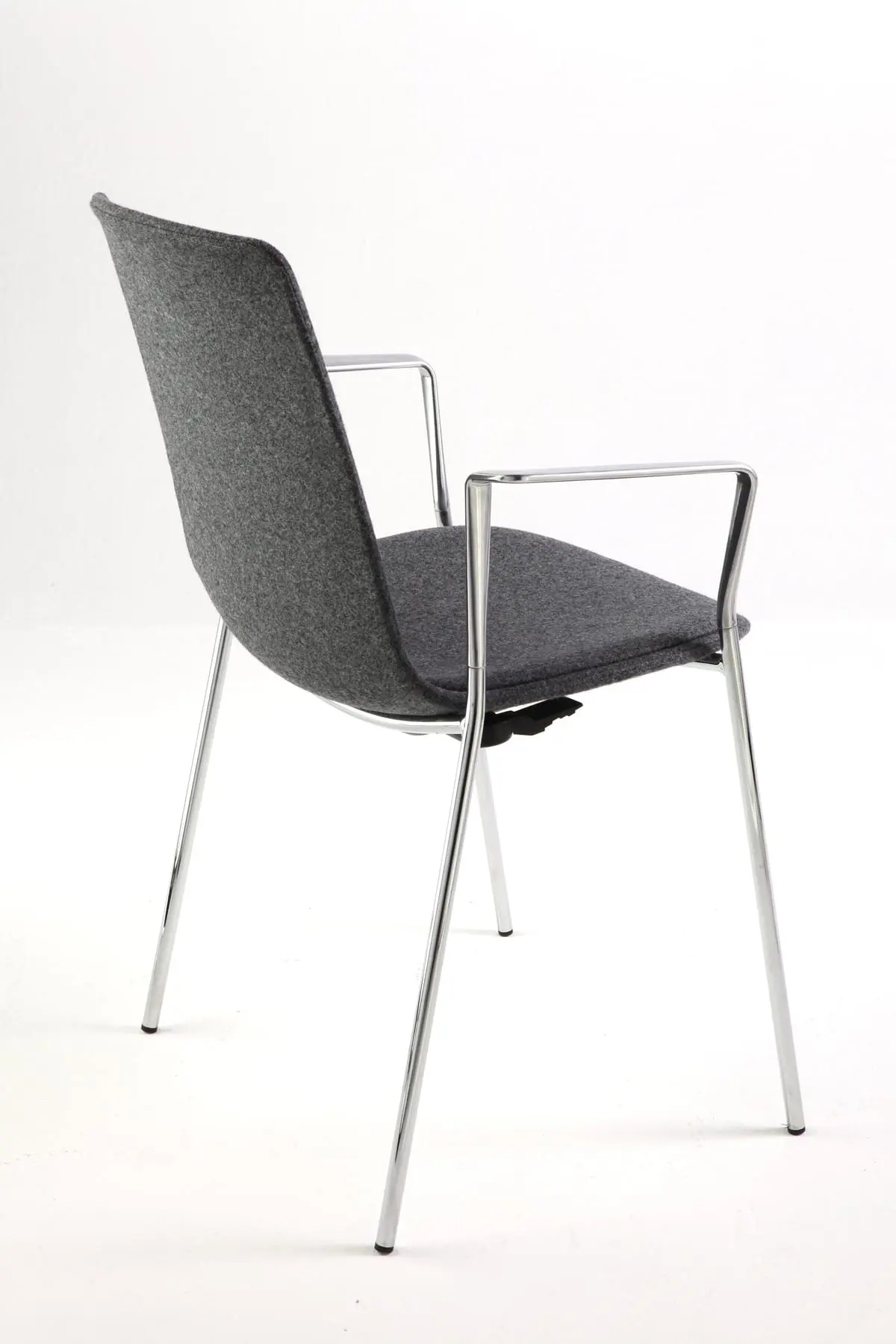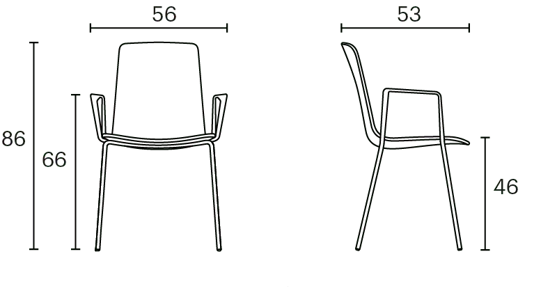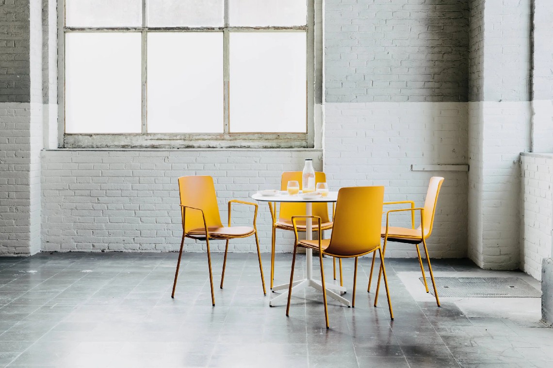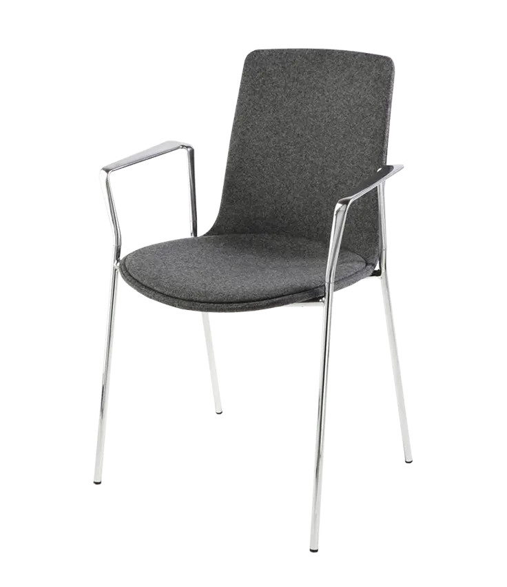 Lottus High chair has a 4-legged steel structure that comes in chrome or lacquer in any of our colours and it has a broad range of finishes available: polypropylene shell with or without polypropylene or upholstered seat pad, or fully upholstered one. Furthermore, this model has steel, aluminium or wing arms.