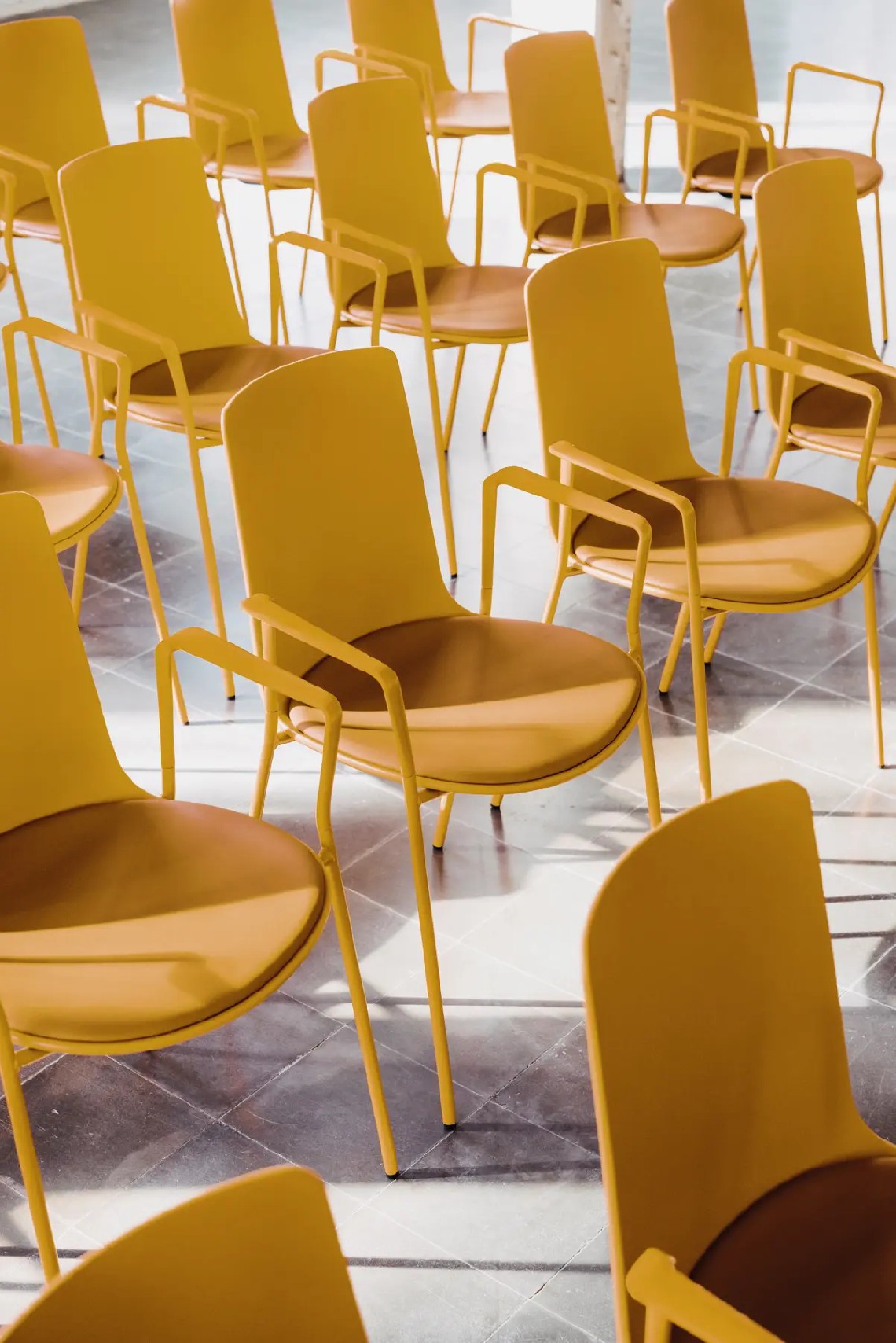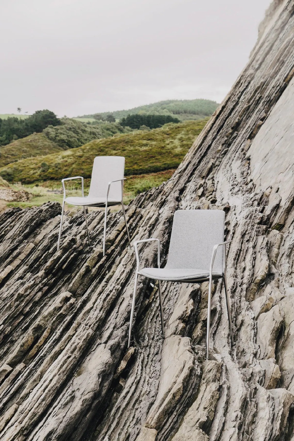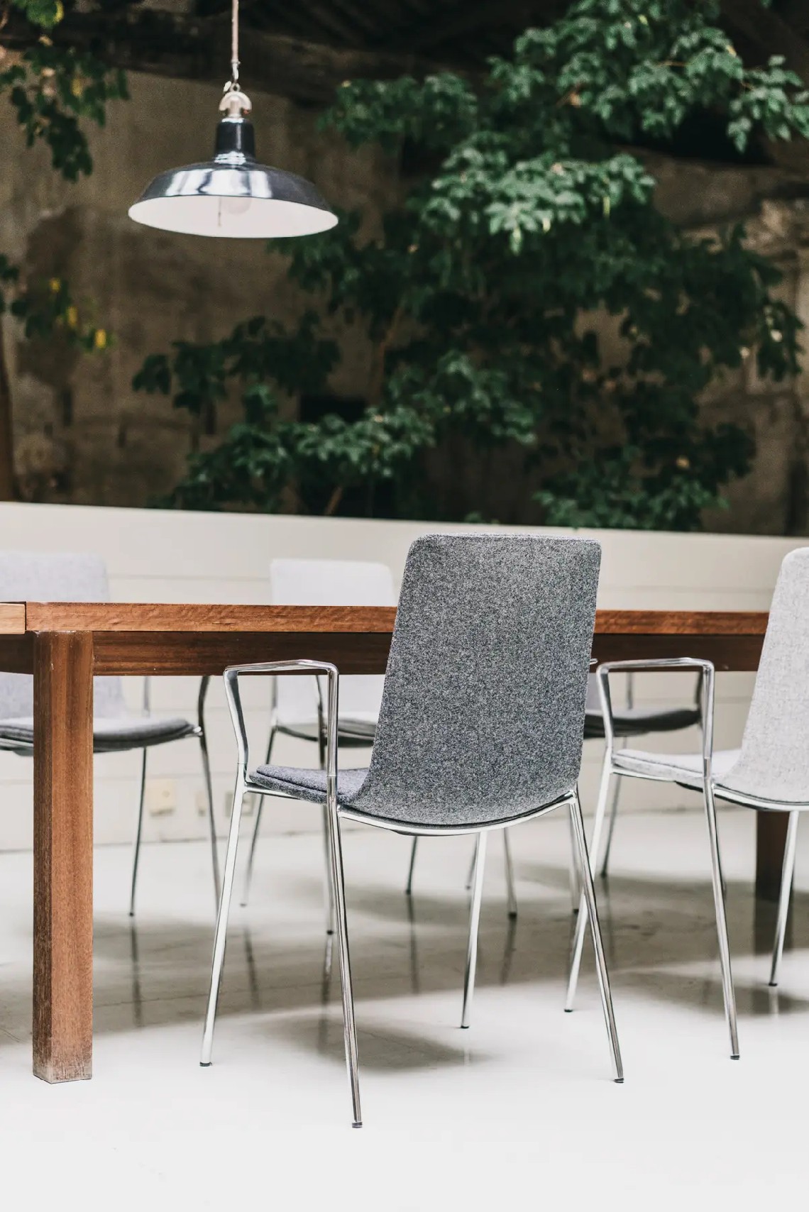 Lottus High chair has a 4-legged steel structure that comes in chrome or lacquer in any of our colours and it has a broad range of finishes available: polypropylene shell with or without polypropylene or upholstered seat pad, or fully upholstered one. Furthermore, this model has steel, aluminium or wing arms.
