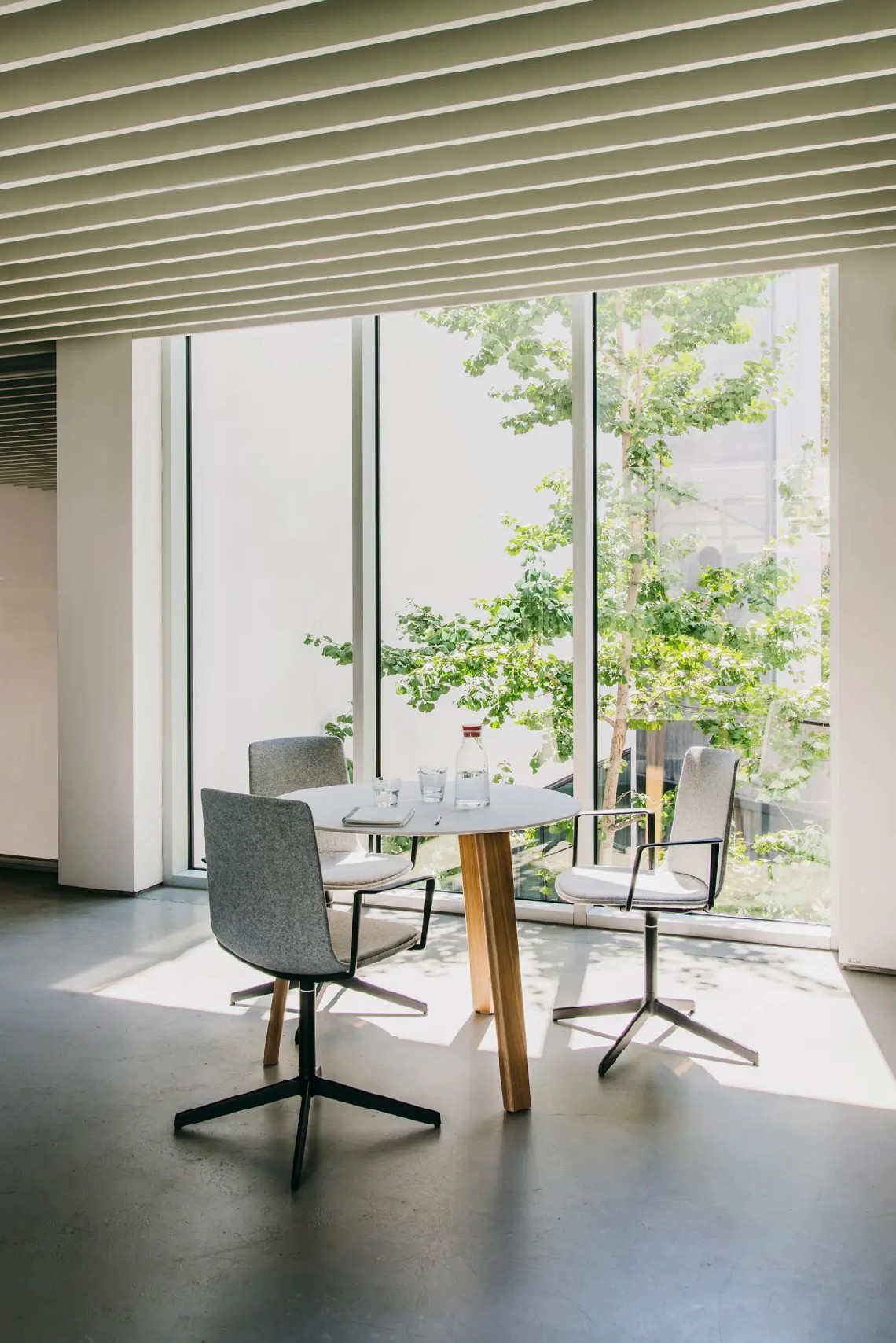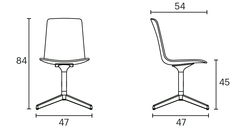 Lottus High confident chair has a 4-star swivel or fixed aluminium base that comes in polish or lacquer option in any of our colours and has a broad range of finishes available: polypropylene shell with or without polypropylene or upholstered seat pad, or fully upholstered one. Furthermore, it is possible to add aluminium or natural or stained oak wooden arms.