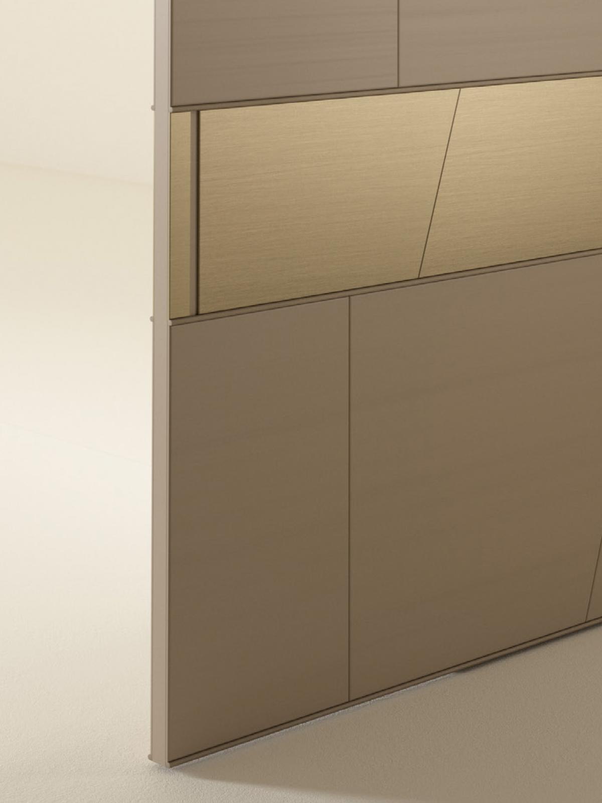 Terre系列采用不同材質的梯形板,通過拼接組裝而成。鑲板的選擇、鋪設的自由度以及板材的人工搬運都體現了其靈活性。