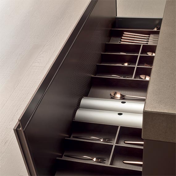 Icon 采用了極具技術價值和強烈視覺沖擊力的解決方案進行創造,飾面元素能夠提升舒適感,賦予廚房美觀的同時,又為其增添觸感。