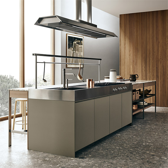 K-Lab 以采用拉絲鋼飾面的開放式家具系統為特色,其設計靈感來自于工業廚房中的大型操作臺。實心塊體與開放式家具采用經過精心計算的交錯式布置,既能滿足各種功能需求,又可以讓整個項目煥發生機 活力。