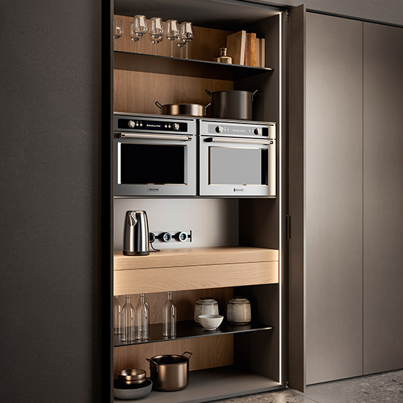 獨(dú)特的、多功能組合的解決方案,適合家庭生活的理想環(huán)境。一個(gè)最小的、精致的廚房