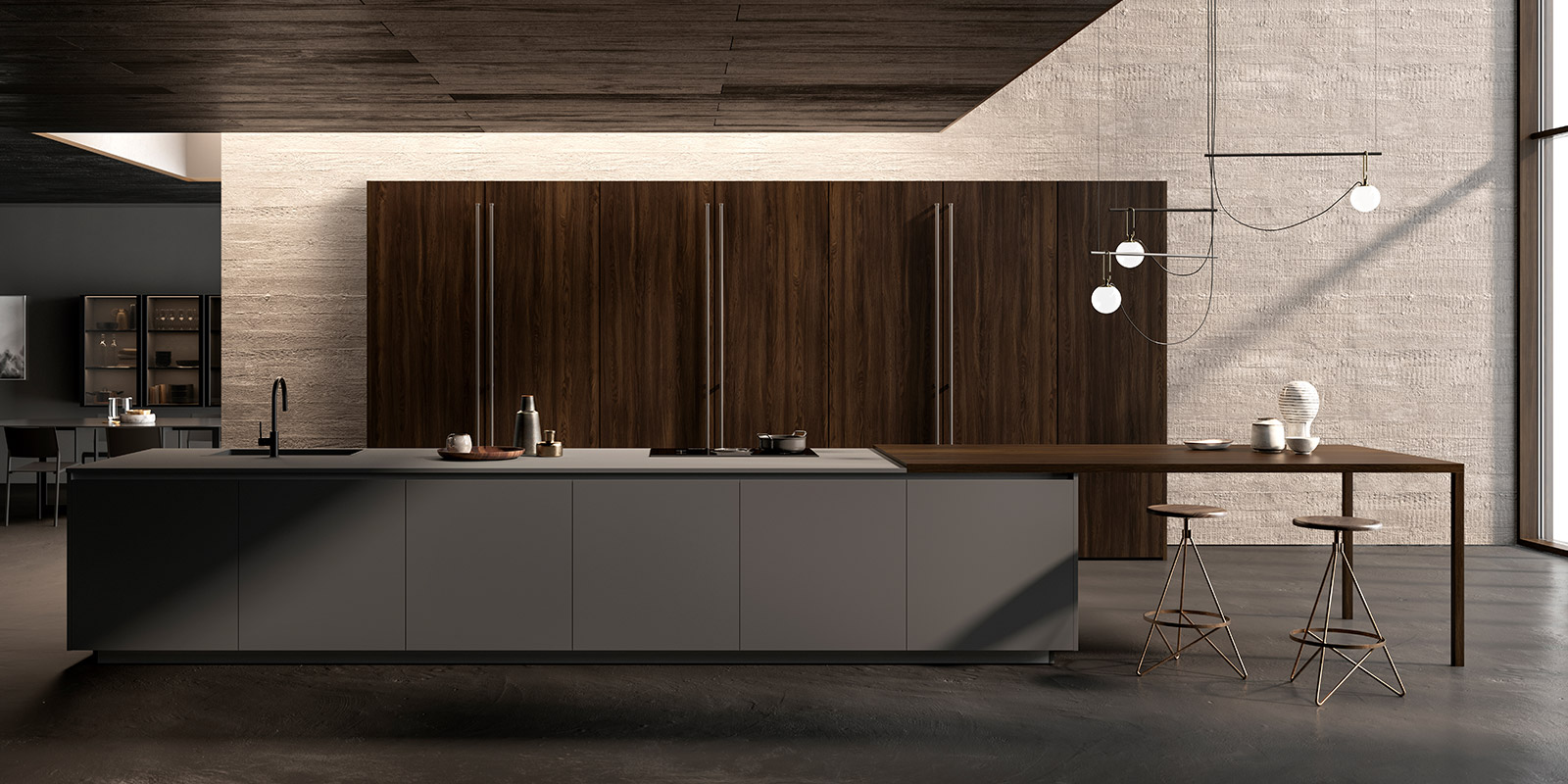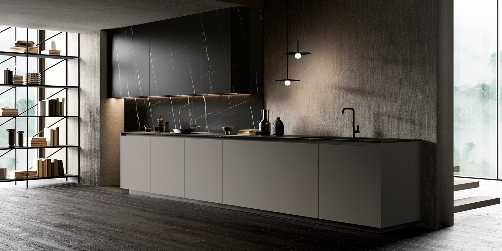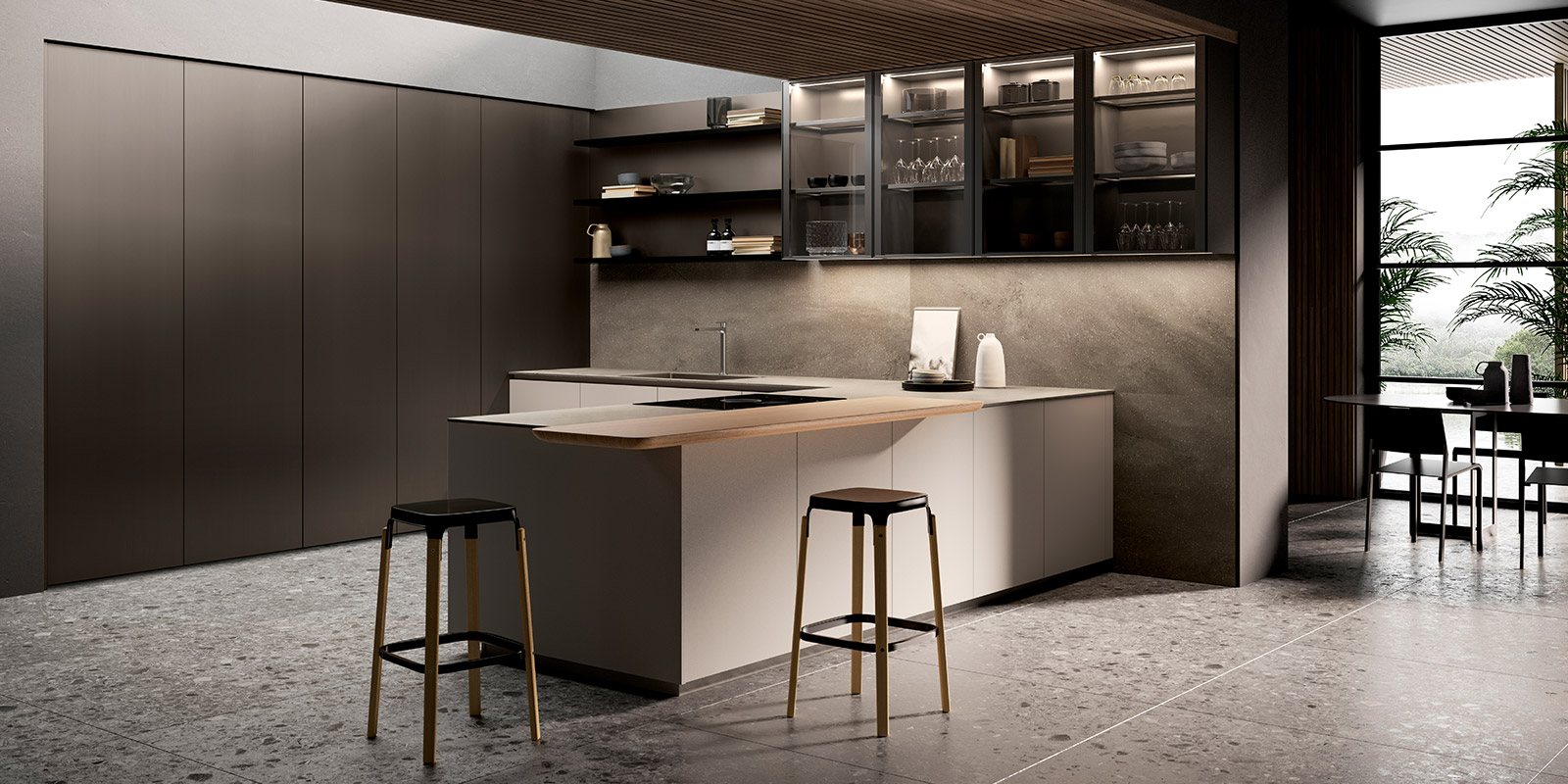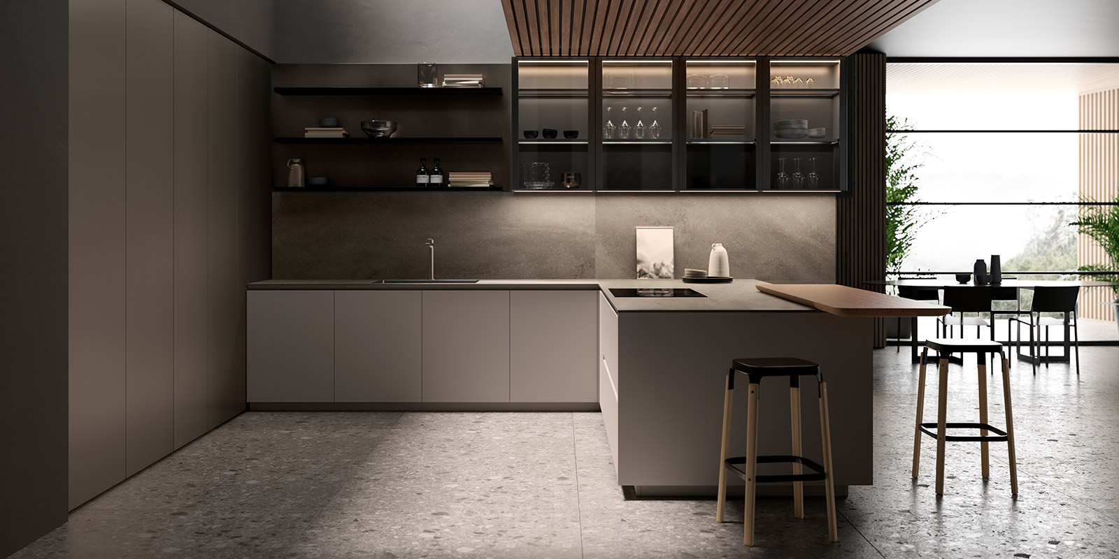 現(xiàn)代風(fēng)格的線性廚房既實(shí)用又功能多樣。