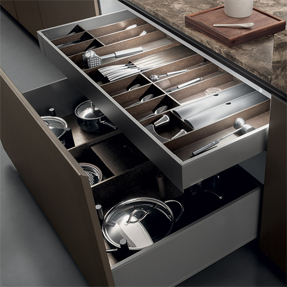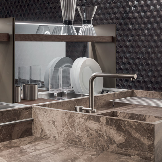 Medley 可以安裝擱板、碗碟可以安裝管道收集盤子、玻璃杯和餐具排水器中的水,甚至還有外排式排風(fēng)罩等爐灶電器。