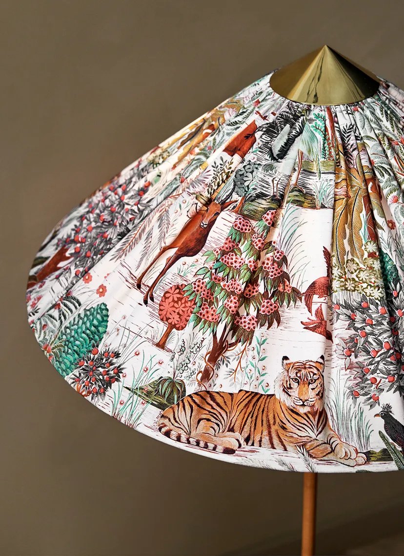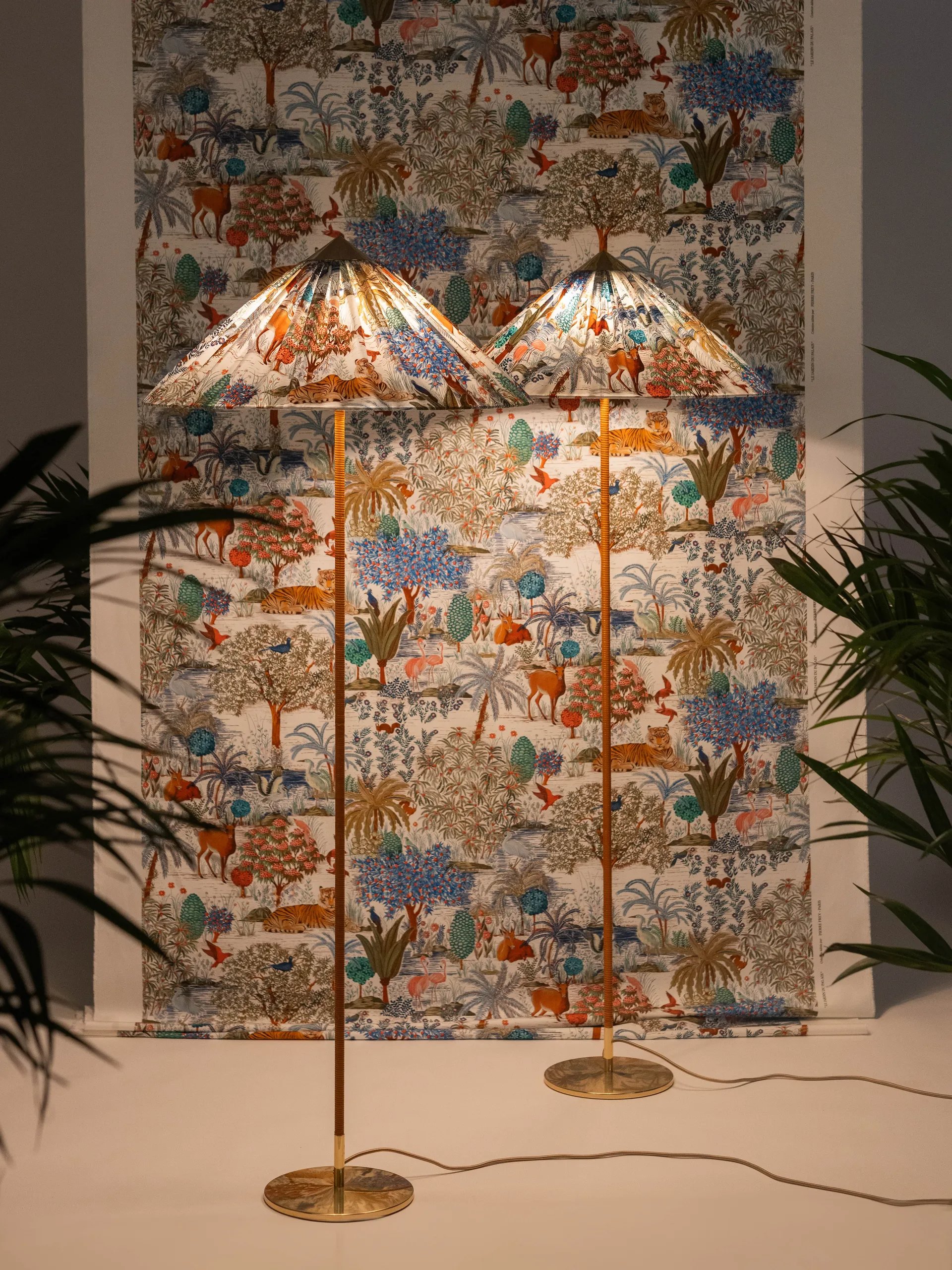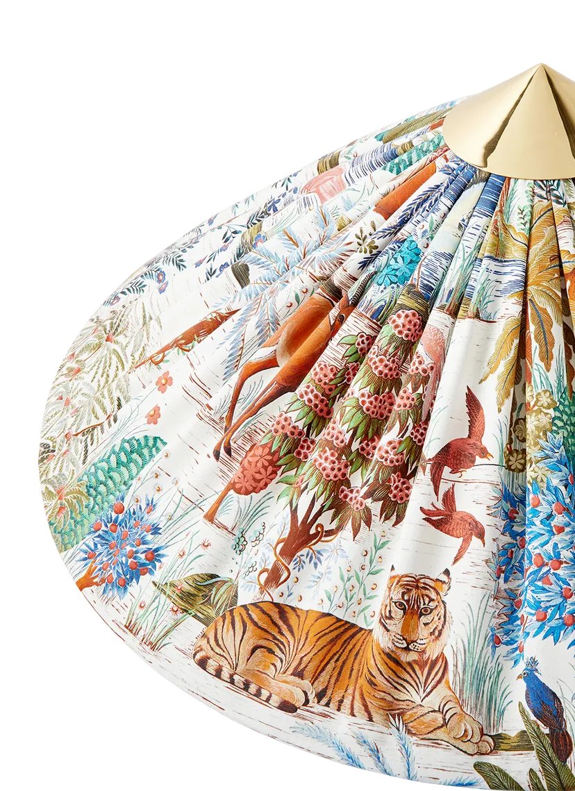 First created for Helsinki’s Hotel Aulanko in 1935 and reintroduced by GUBI in 2018, the 9602 Floor Lamp comprises a rattan-wrapped stem with a polished brass base and conical crown that ties the design together. In this special edition, GUBI brings together two masters of 20th-century design – the Finnish lighting maestro Paavo Tynell, and the renowned Parisian textile house Maison Pierre Frey, introducing a dreamlike new dimension to the Tynell Collection.