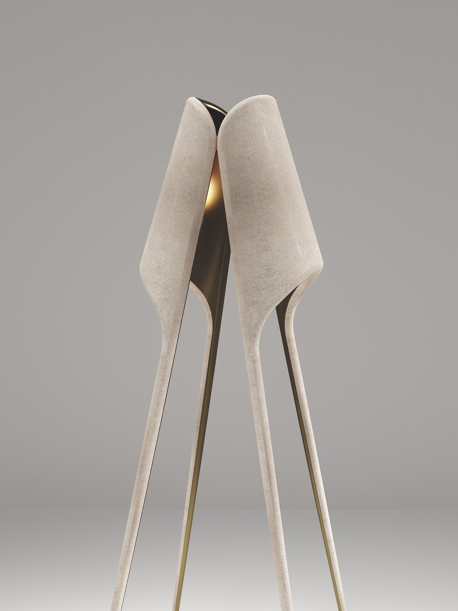 The Frequency Floor Lamp by R & Y Augousti is sleek piece with a vintage-modern feel. The piece explores fluid organic lines with subtle detailing to create the signature Augousti aesthetic.