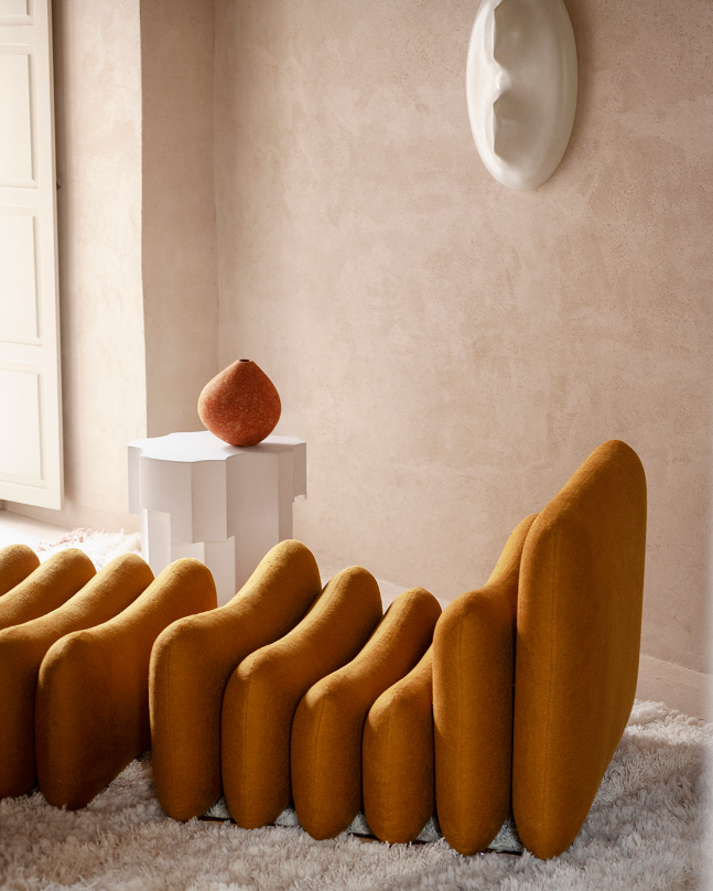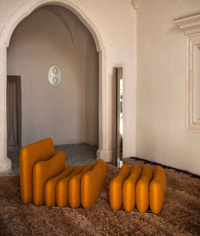Modules with unusual shapes give life to original seating configurations where aggregation and variability take center stage. Additional System is a project by Joe Colombo from 1967, reimagined today by Tacchini while respecting its original spirit: a modular system with timeless allure, still “futuristic” even 50 years later. Cushions of six different sizes, inspired by ergonomic studies of the 1960s, come together in dynamic and flexible combinations created by varying the number of elements and how they are positioned. Additional System is available in armchair, pouf, and daybed versions.
