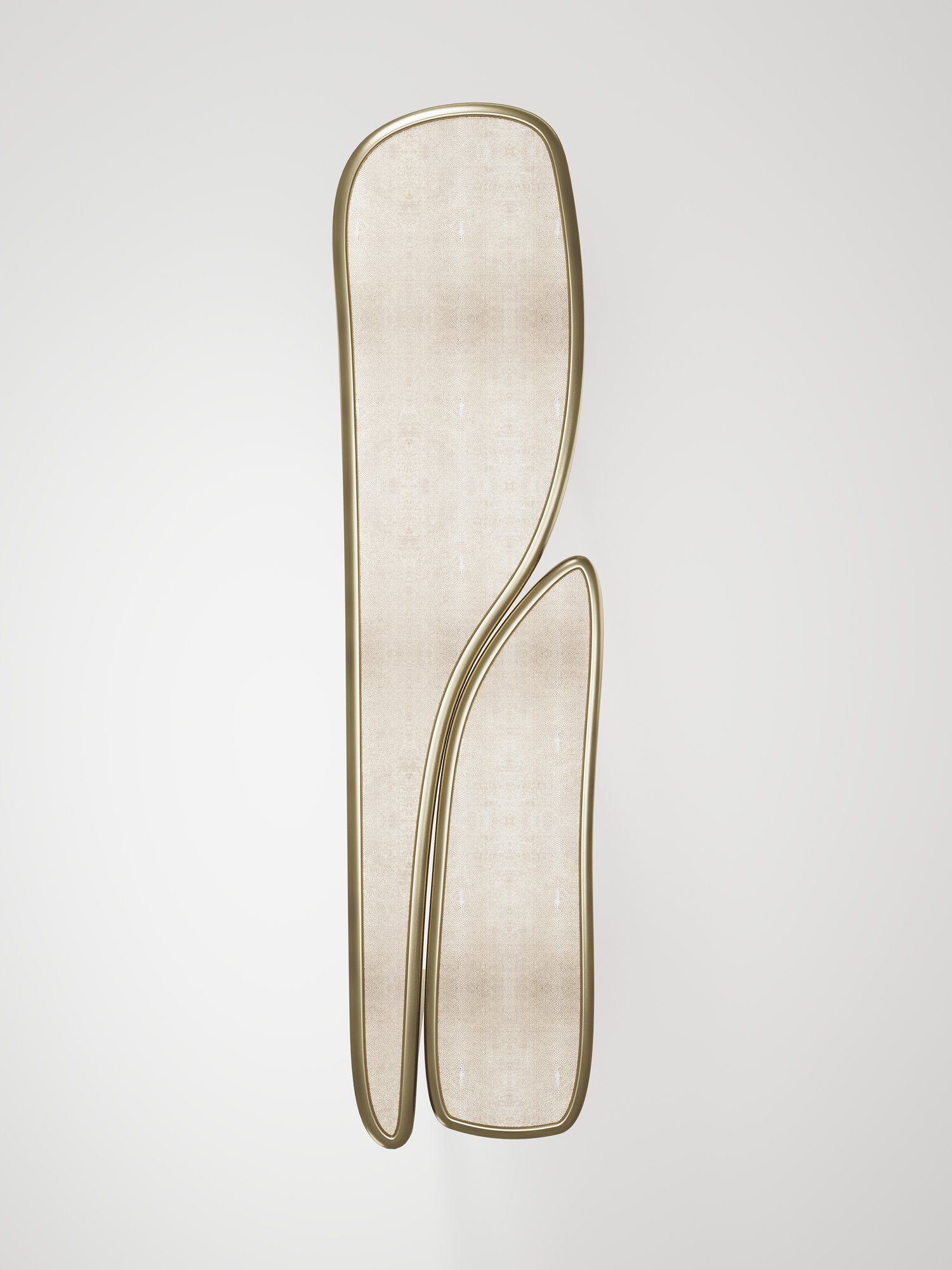 The piece is inlaid in a mixture of cream shagreen and bronze patina brass.