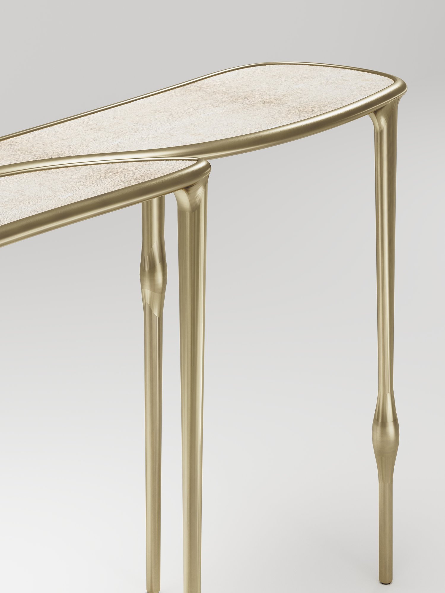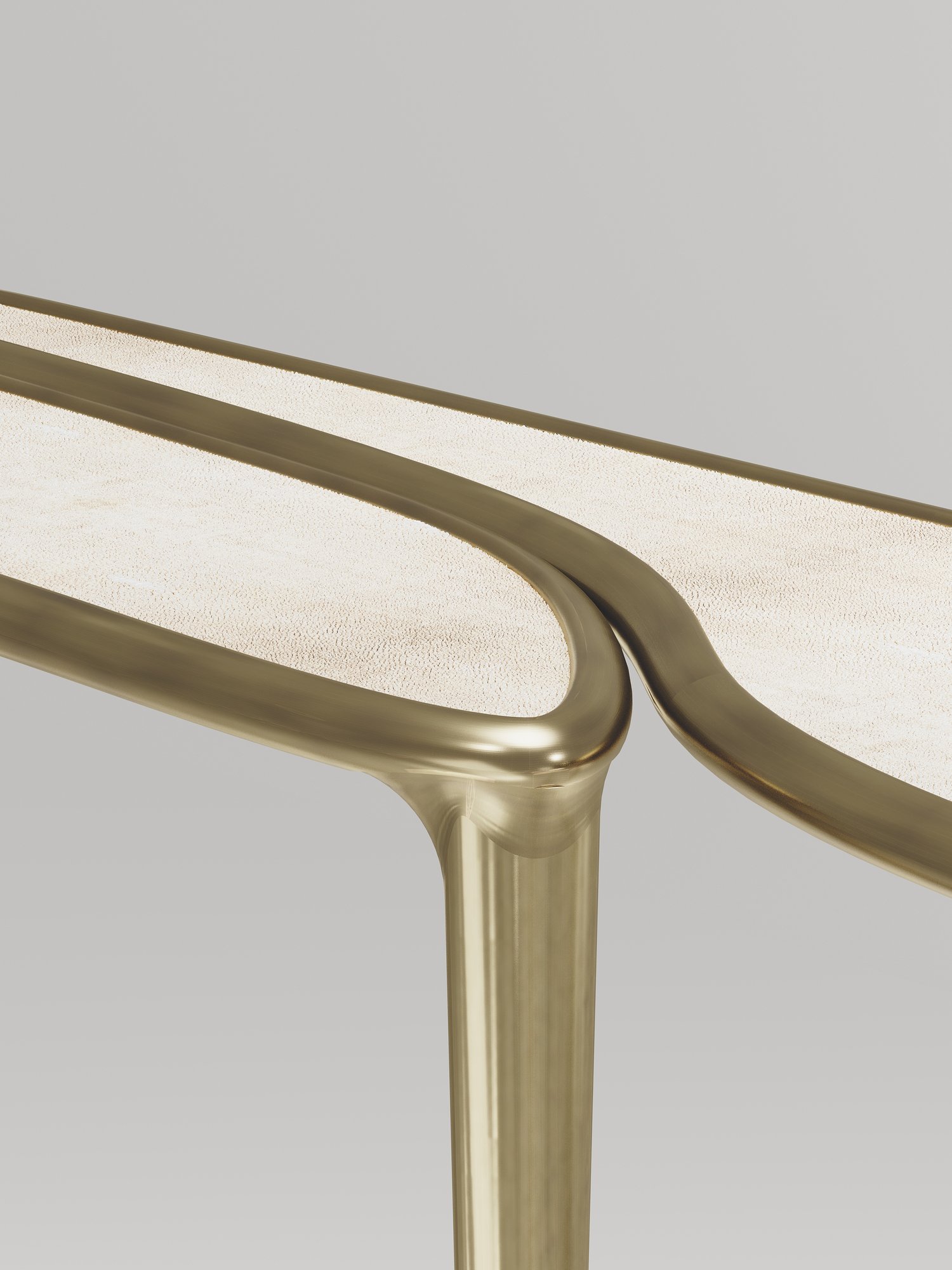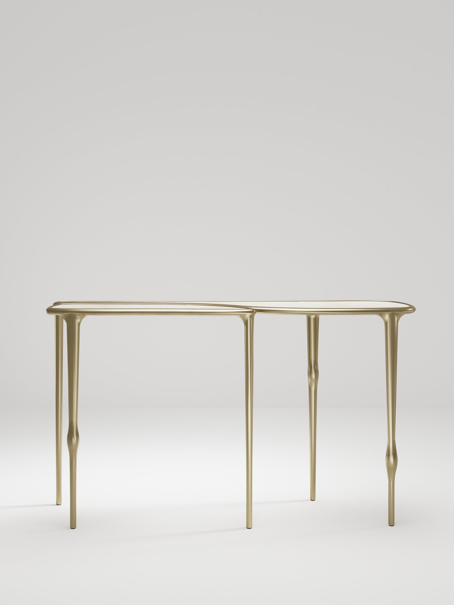 The Frequency console table by R & Y Augousti is sleek piece with a vintage-modern feel. The piece explores fluid organic lines with subtle detailing to create the signature Augousti aesthetic.