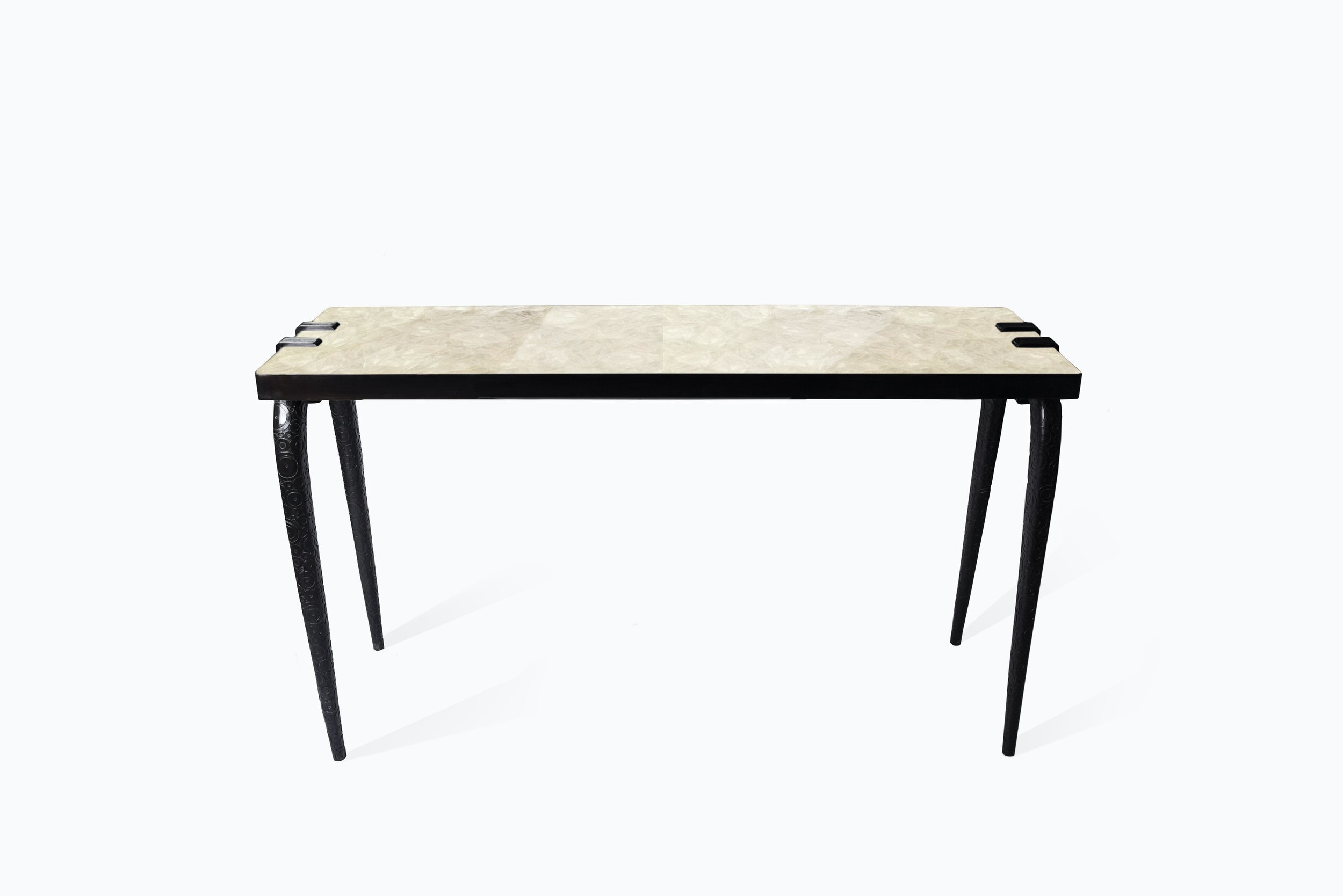 The iconic console is the perfect statement piece for any room. The circle inlay work on the legs makes this piece unique even more incredible.