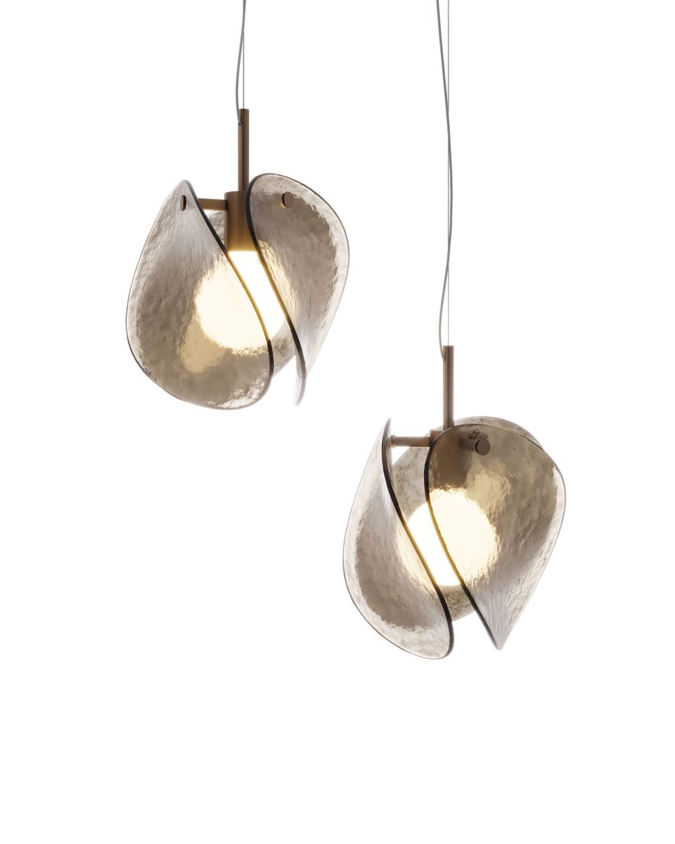 Diffusore decorativo composto da tre elementi in vetro fumè o bronzo da 6mm fuso a gran fuoco.