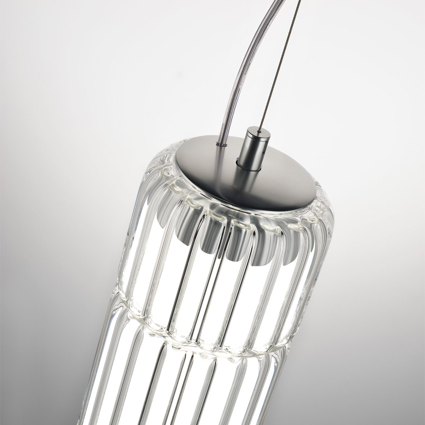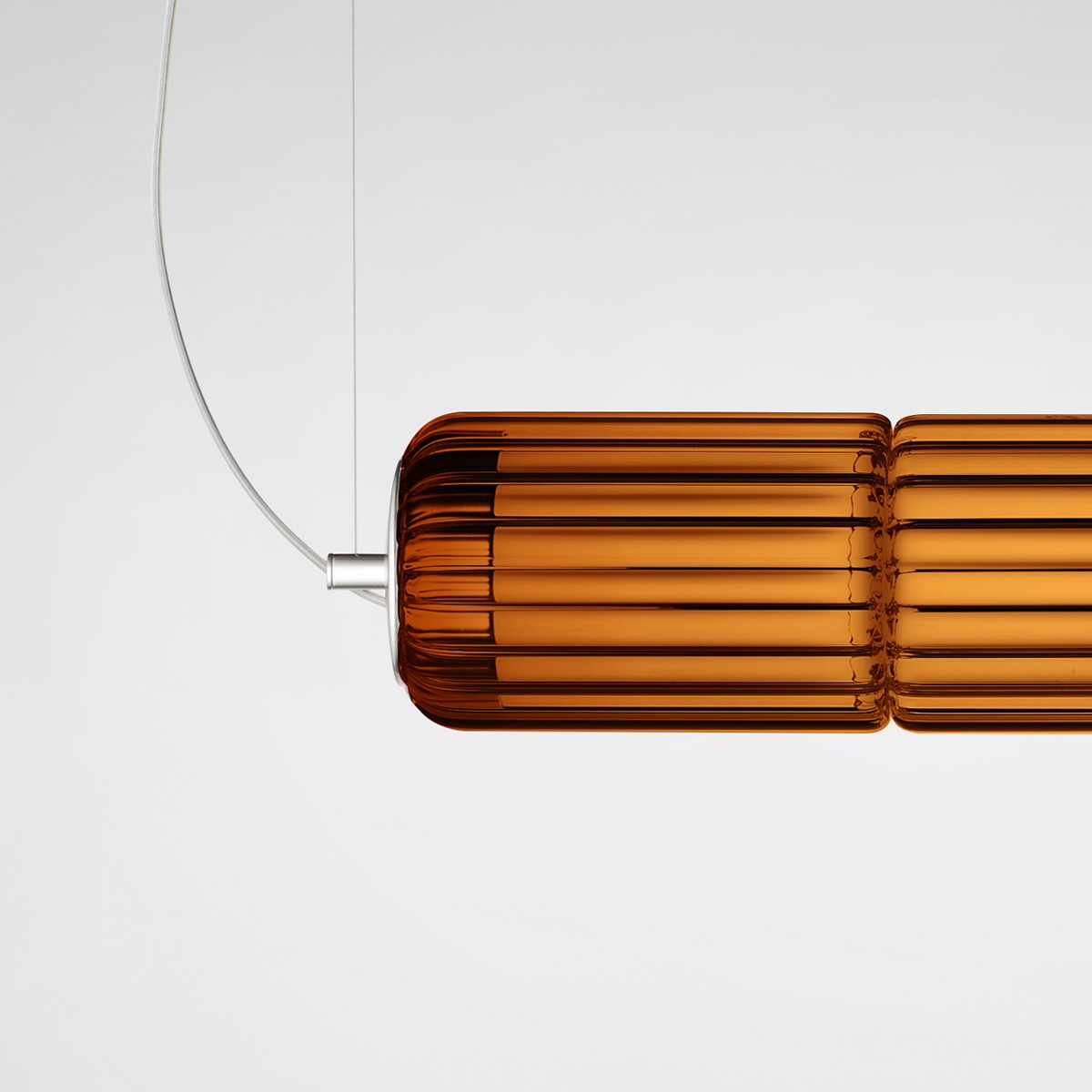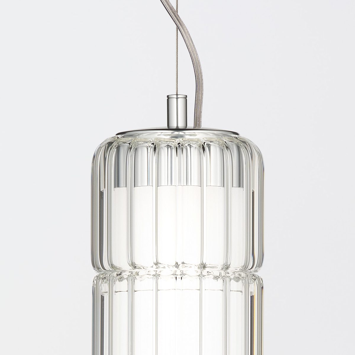 Progettata da Rockwell Group, la Collezione Stacking unisce tecnologia all'avanguardia e tecniche tradizionali di lavorazione del vetro. Comprende tre serie di lampade da terra e una serie di lampade a sospensione orizzontali e verticali. La versione da terra è stata disegnata nel 2007 e rende omaggio alla ricca tradizione vetraria veneziana che utilizza la tecnica chiamata “incamiciato”: abili maestri vetrai sovrappongono vetri con proprietà distinte, creando un affascinante mosaico di colori e opacità dando vita a inaspettate sinergie di luce. Questa tecnica ad alta intensità di lavoro crea diversi colori e opacità in ciascun modulo di vetro. Quando questi moduli cilindrici si accostano e si sovrappongono, un accattivante mix di colori proietta una sofisticata luce su tutto l'ambiente circostante.