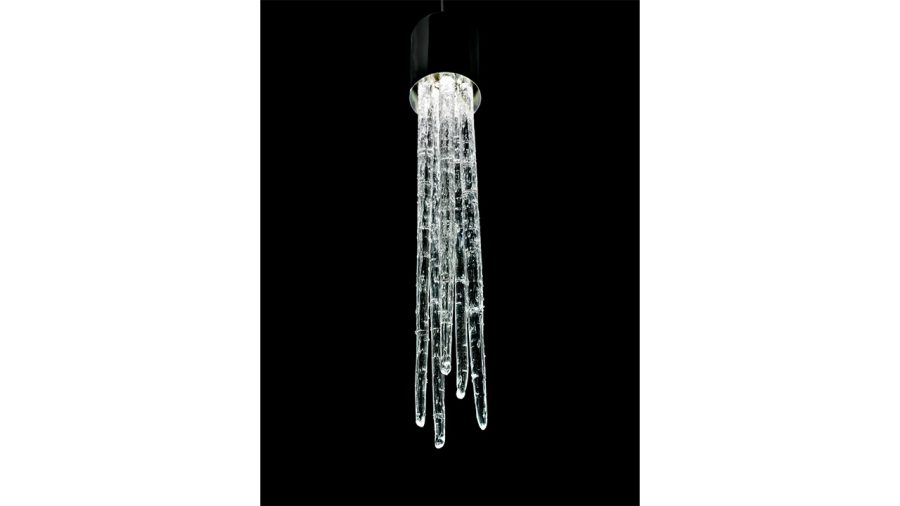 Lampada a sospensione con elementi pendenti in vetro di Murano massiccio.