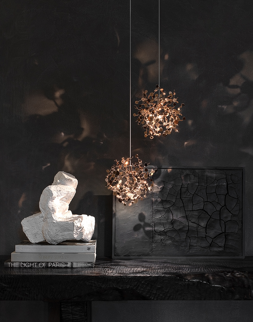 Terzani design team can work with you to develop a bespoke Argent, mon bijou design that fits your project including these options: wire length, finish, cluster design.
