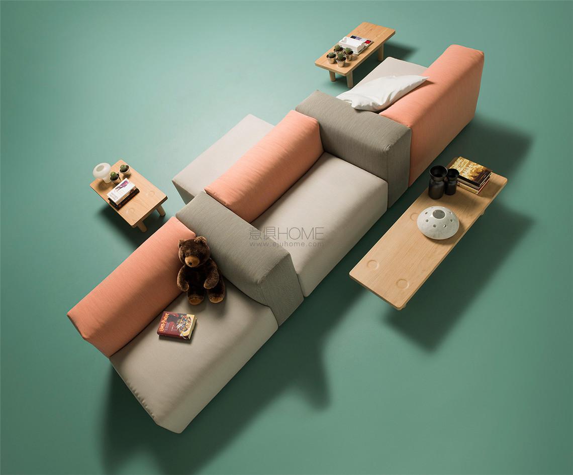 Compared to the Superoblong, the Oblong System sofa has no zippers, and is enhanced by numerous additional modules that can be used for endless compositions, where the interplay between colours becomes protagonist.