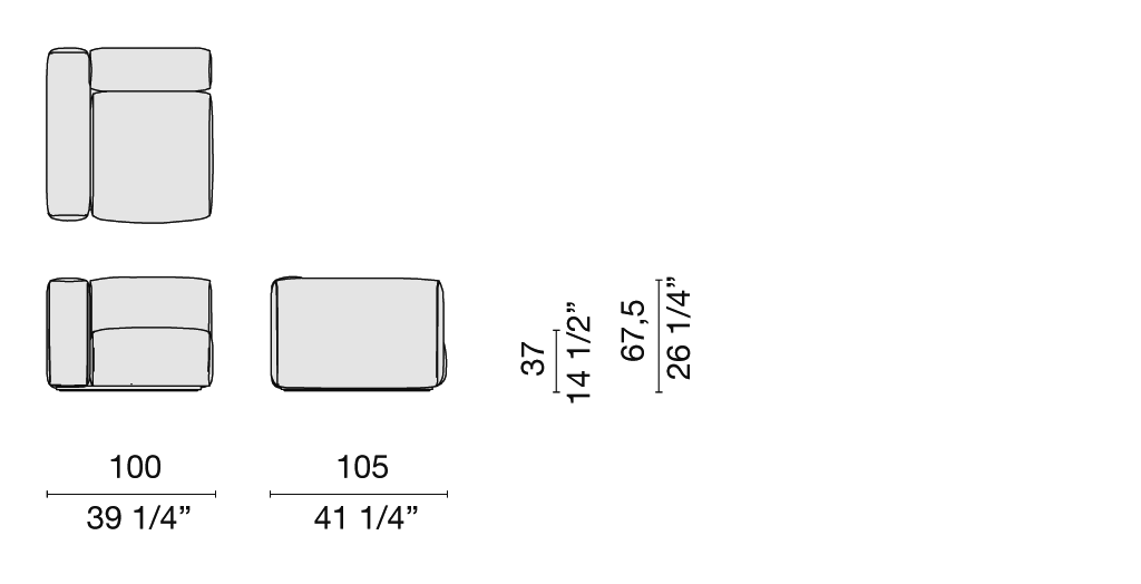 Jasper Morrison’s Oblong System is padded with multi-density polyurethane foam and fibre; with removable covers in a selection of fabrics and leathers from the collection. The seat is available in several different depths and widths; the end unit can come with or without an armrest