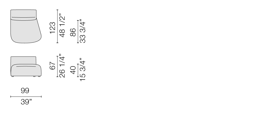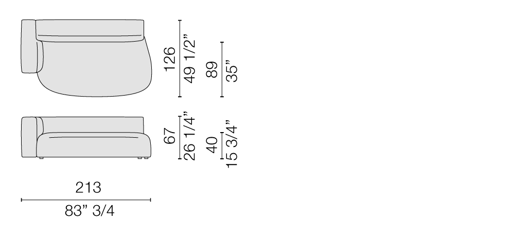 With a structure made of wood conglomerate and pine plywood, these sofas are equipped with removeable covers, in a selection of fabrics and leathers from the collection. Also available without armrests or with a single armrest, Litos modules are accessorized with free cushions that can be placed at will, for customised comfort.