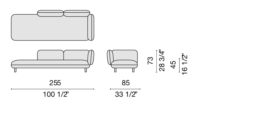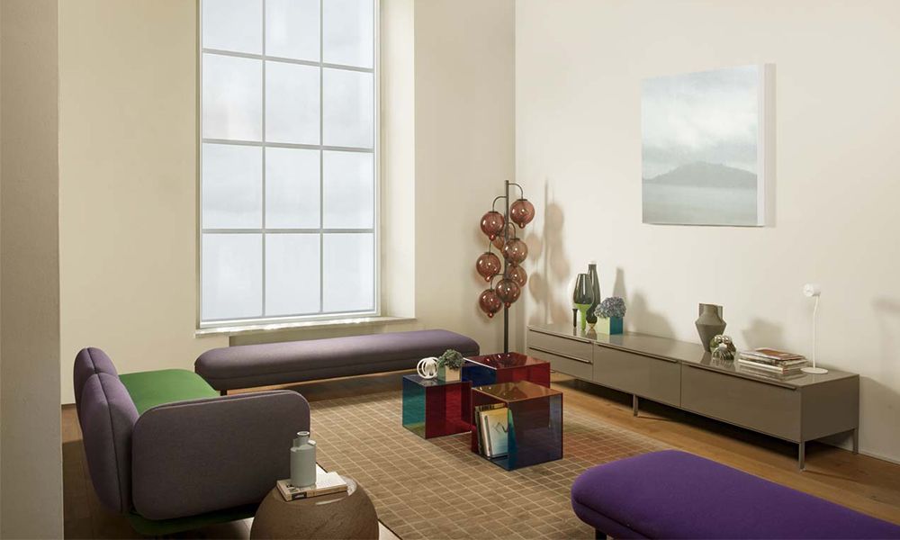 Designed by Aisslinger and Bunyaprasit, the Hobo Contract sofa is a family of composable seats that includes a two and three-seat sofa, a chaise longue (right or left), right and left end units, two and three-seat benches with a backrest on left or right, and a pouf in two sizes.