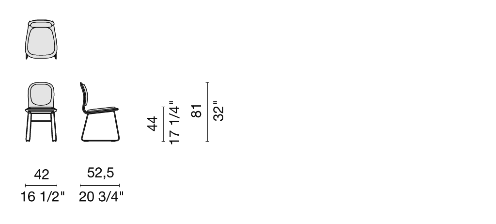 The structure of these seats is made of beech plywood, with a fixed cover in the fabrics and leathers from the collection. The base is built of stainless steel with a satined or matte varnished finish in white, mud or anthracite.