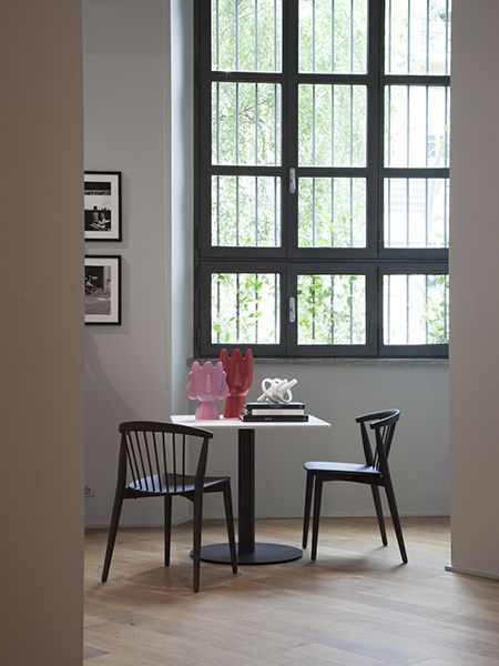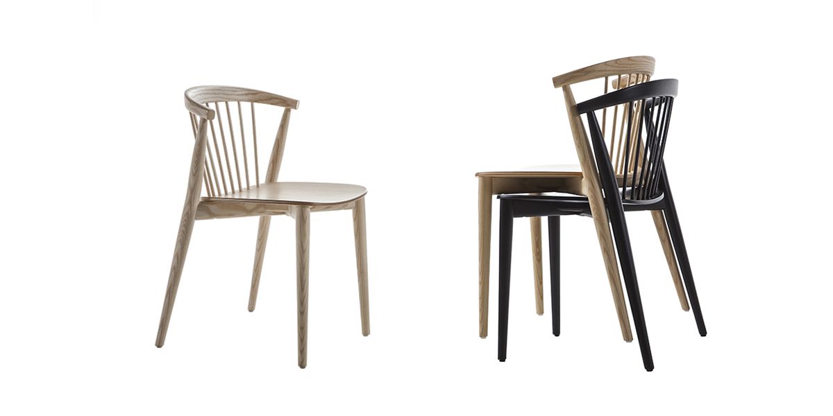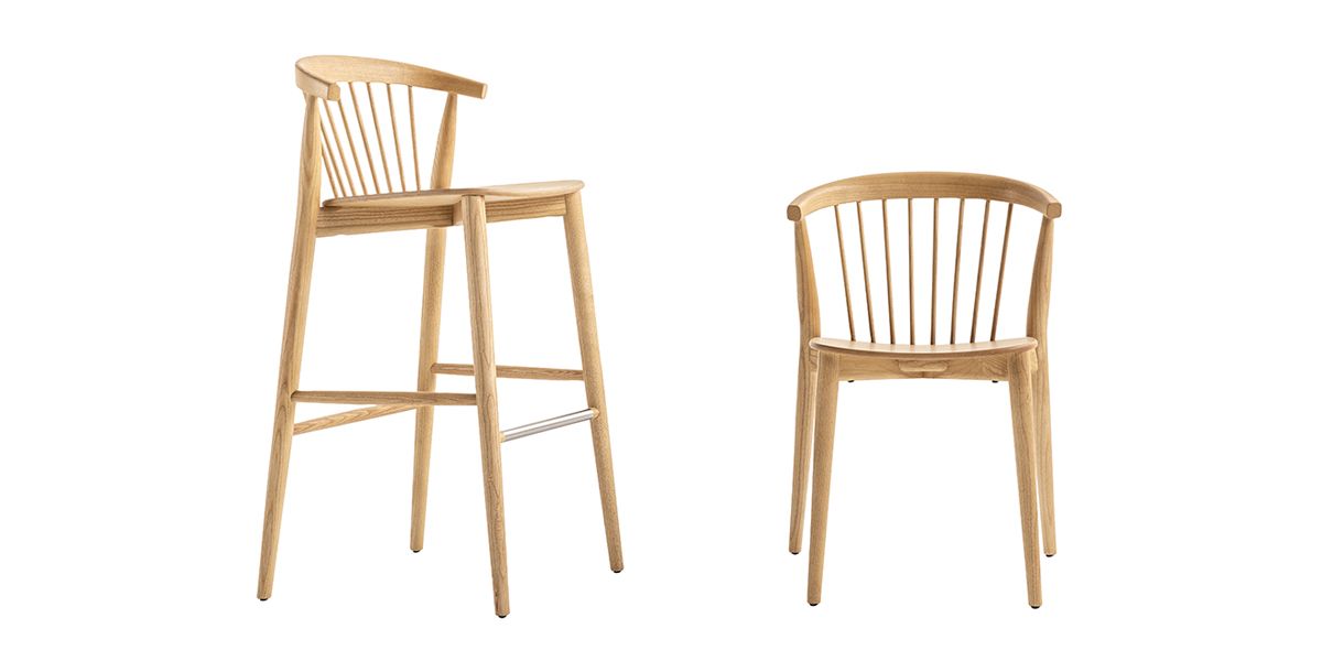 The result of a contemporary re-interpretation of the timeless charm of Windsor-style chairs: Newood chairs are available in a range that includes the Newood Stool.