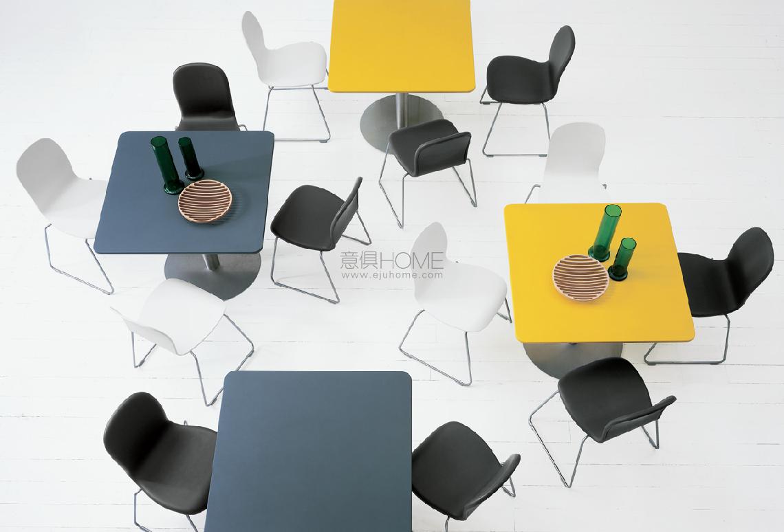 The Break table collection, by Giulio Cappellini, includes numerous stylish options that adapt beautifully to both private and contract use.