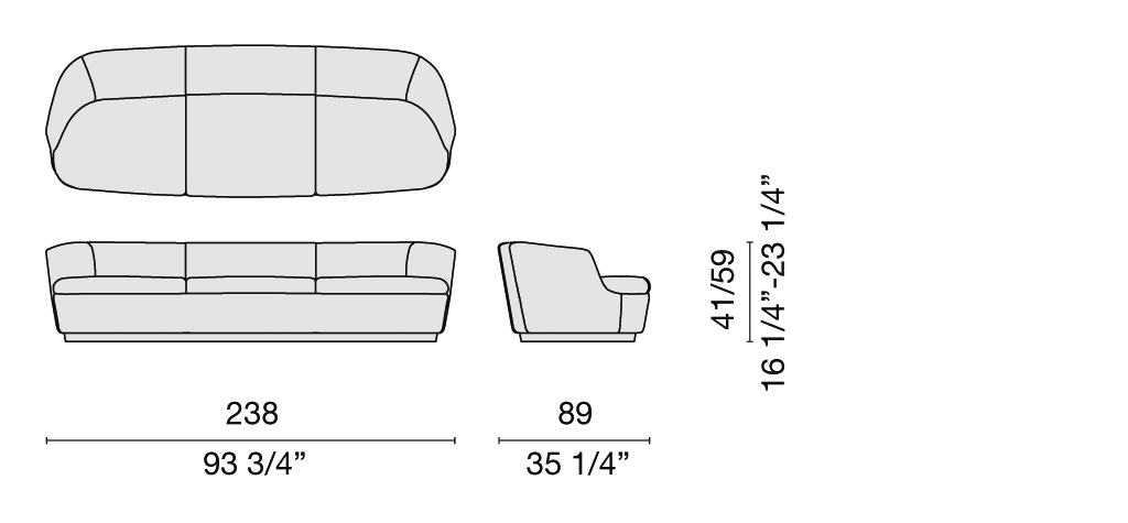 For the armchair and sofas, the cover of the structure is fixed, but removable for the cushions, and is available in the fabrics and leathers of the collection; for the small sofa and small armchair, the cover is fixed for both the structure and the cushions – all of which are also available in the fabrics and leathers in the collection.