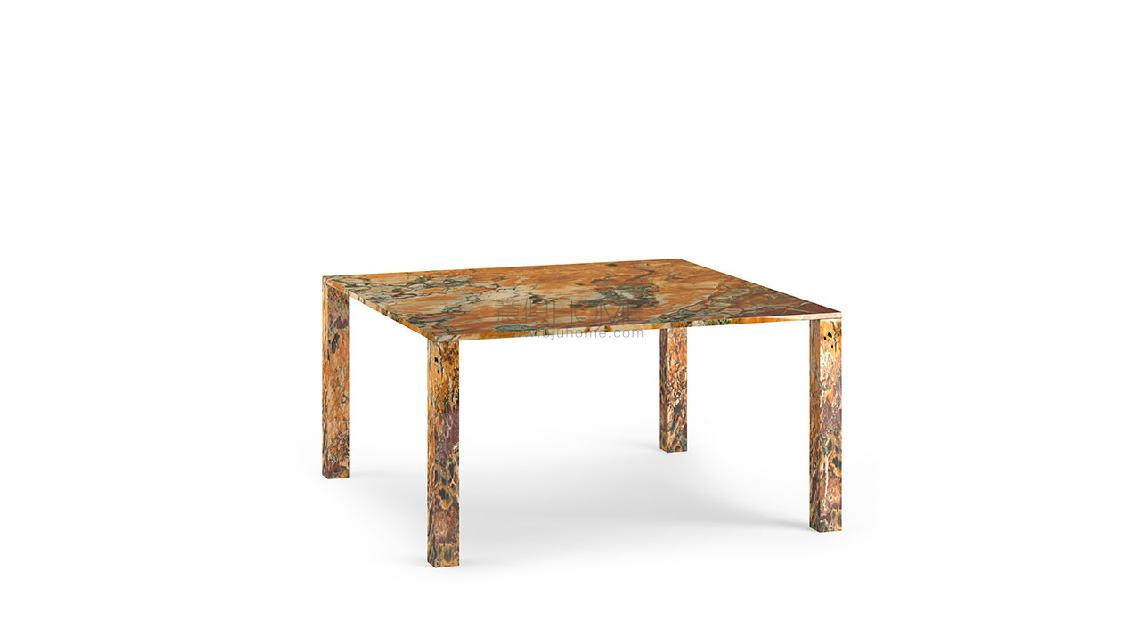 Elegant and sophisticated, the Vend?me tables are captivating, thanks to the lavish harlequin pattern, typical of this variety of marble, which has been polished to obtain a brilliant finish.
