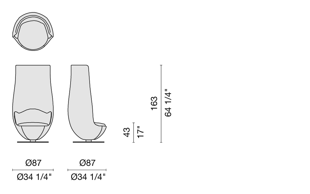A re-visitation of the classic armchair, with elongated oversized proportions, Wanders' Tulip Armchair has a shell made of fibreglass and resin; padded with soft and firm polyurethane foam; the fixed cover is available in a vast array of fabrics and leathers. The calyx shape of the armchair evokes the silhouette of a flower resting on a brilliant swivelling metal base, varnished with natural aluminium.