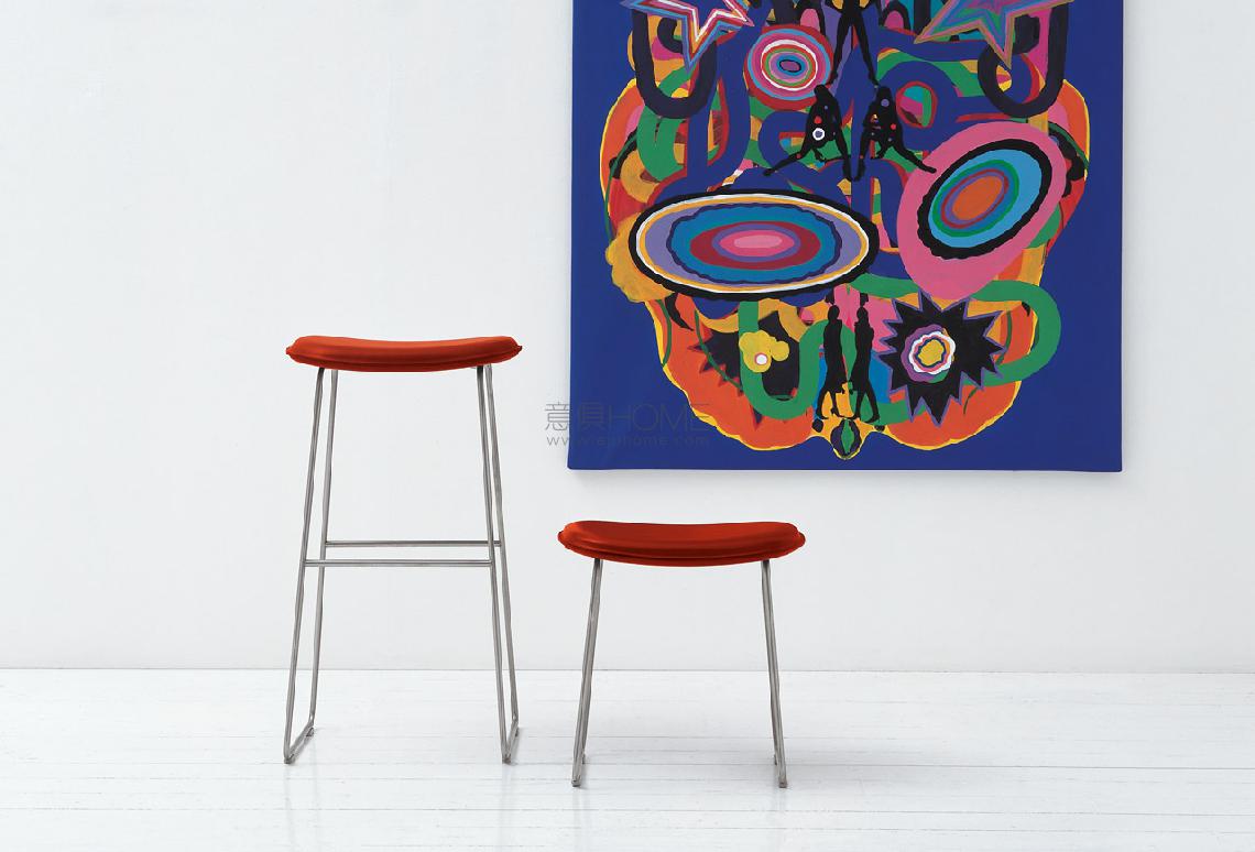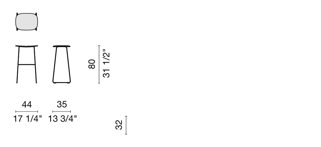 Suitable for diverse settings, from cafés to restaurants or informal lounges, the seat of this stool is available in ash wood with a bleached, black-stained or wengé finish. Alternatively, it can be padded with polyurethane foam with fixed upholstery in a selection of fabrics or leathers in the collection. The base is made of stainless steel with either a satined or matte-lacquered finish, in white, mud or anthracite.
