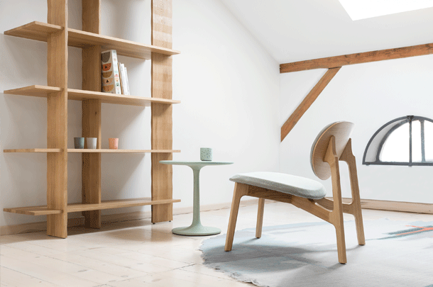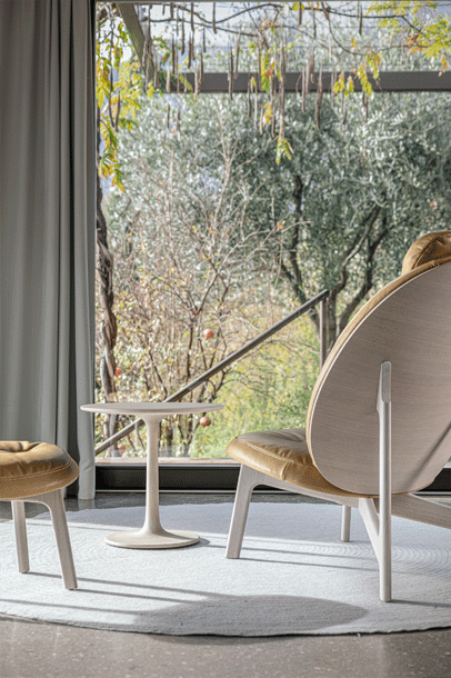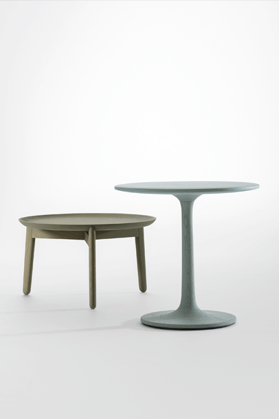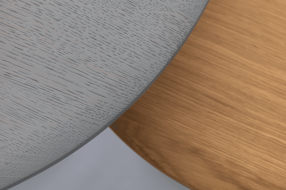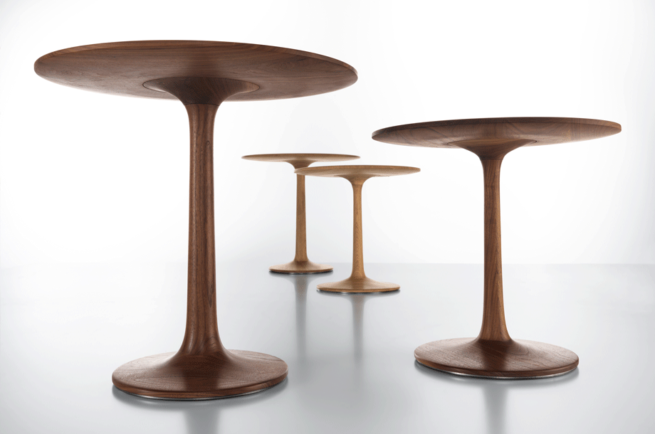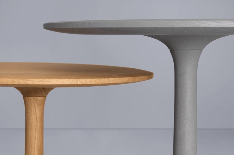 The archaic form of this table speaks for itself. It owes its unique identity to the feeling that it turns around its own axis. It is present in the room as a feature and fixed on its slim-line middle foot in solid wood. To all appearances, this round table has been carved from one piece of wood. Wherever you place it, TURNTABLE is always in the right place.