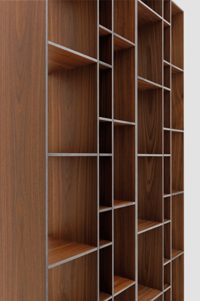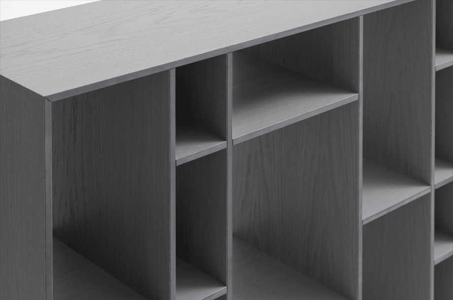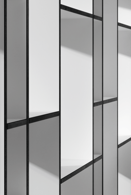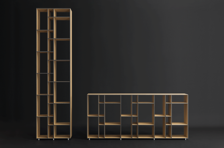 The aesthetic of the shelving is based on graphical structures borrowed from the cladding of Modern architecture. The simple outer-form is an exciting contrast to the differentiated interior. The four compartment sizes can accommodate a wide range of articles ? files and box-files, paperbacks, DVDs and CDs. CODE 2 is ideal for use in all living quarters.