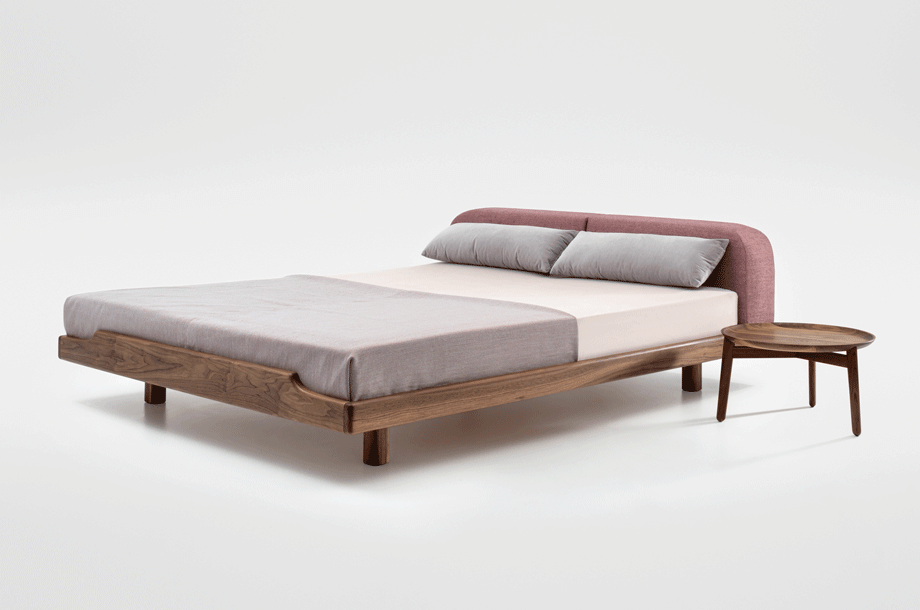 ECLAIR – the bed with soft contours. The ECLAIR bed is characterised by its concise outer contours. The minimalist frame construction encompasses the mattress on top. The foot section rises with a swing – a gesture like an embrace that offers security and support.