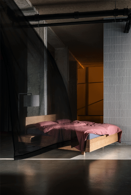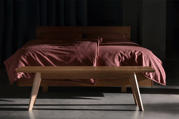 The purist design of the SIMPLE bed family puts the living material in the foreground. The lightness of the construction is enhanced by the floating frame.