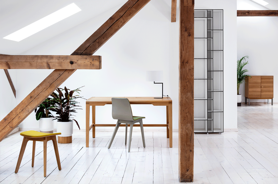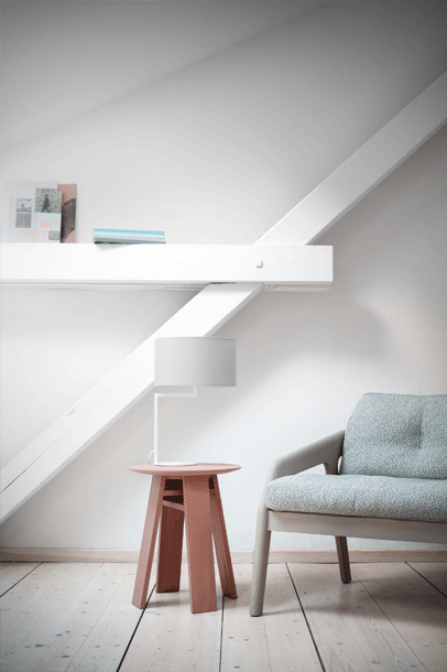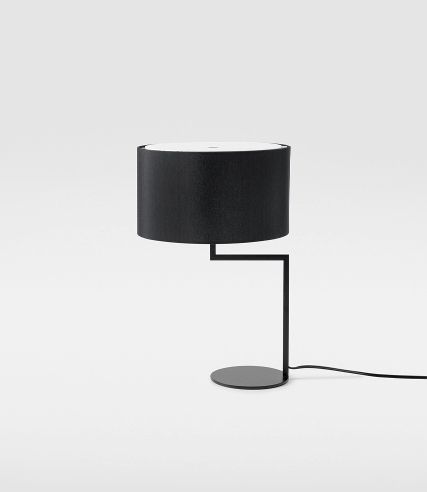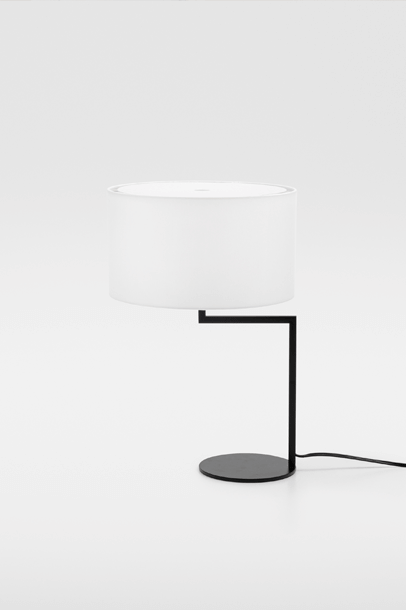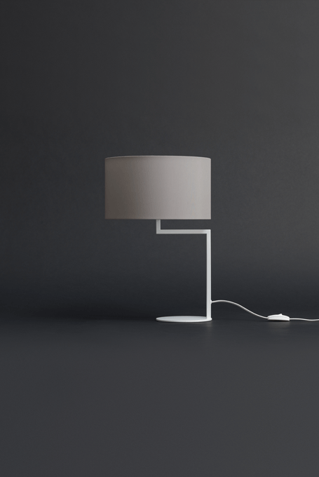 The desire for simplicity and the pleasure in pure design led to a geometrical abstraction of natural branch forms. The NOON range of lamps is rigidly constructed, the textile lampshades give a soft light. The matt black or matt white powder coated finish gives the iron a soft and warm appearance. The intrinsic value of the lamps is a product of material and hand-crafted details.