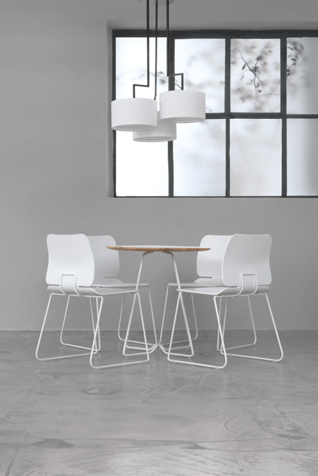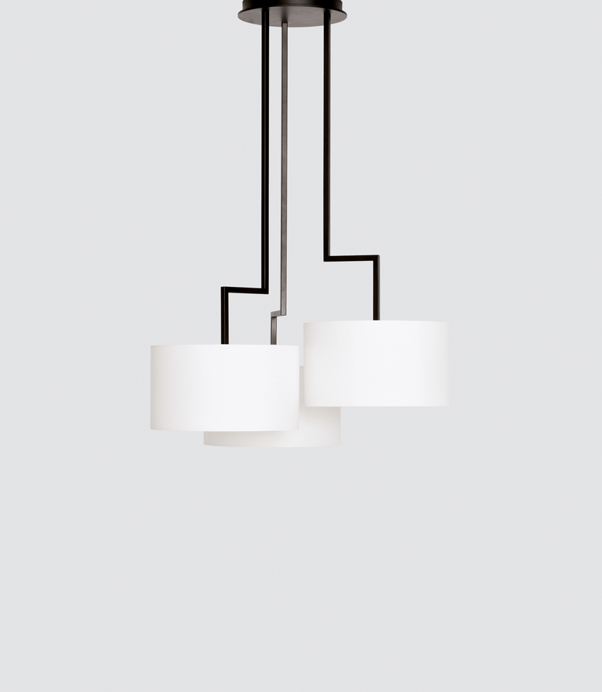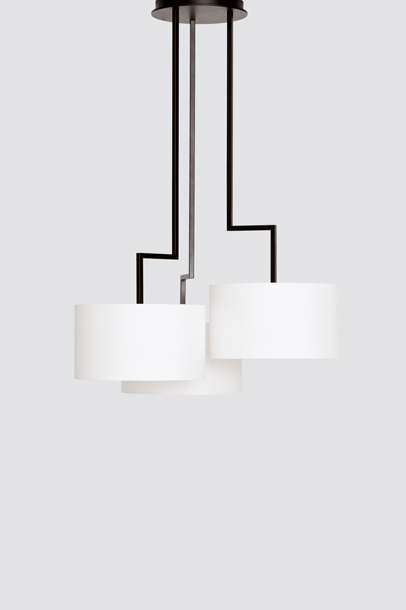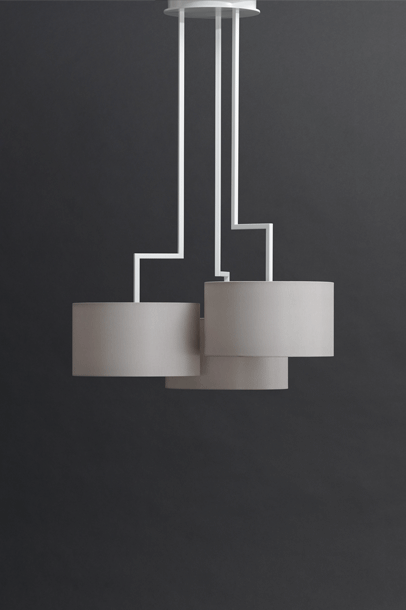 The desire for simplicity and the pleasure in pure design led to a geometrical abstraction of natural branch forms. The NOON range of lamps is rigidly constructed, the textile lampshades give a soft light. The matt black or matt white powder coated finish gives the iron a soft and warm appearance. The intrinsic value of the lamps is a product of material and hand-crafted details.