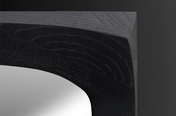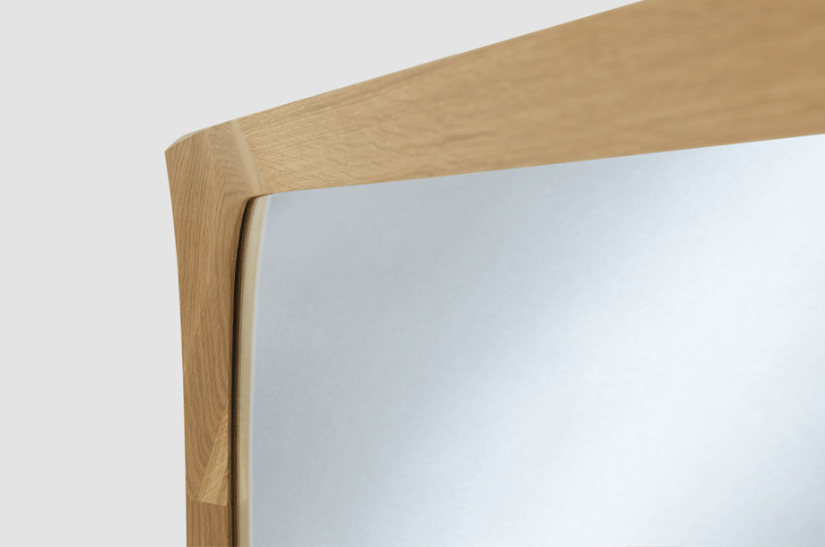 The three-dimensional deformation of its frame turns the BONNY mirror into a true jewel on the wall. The flowing transitions between the profiles combine into a clever interplay of arches and edges to offer the viewer a visually stunning spectacle. The soft movement lends the material an appearance as if it was gently sliding from the wall.