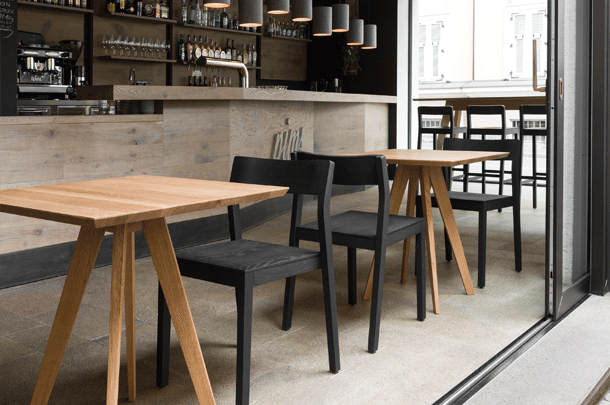 The table CENA shows great strength of character. The bevelled table top gives it a lightness and dynamic contrasting nicely with the reassuringly solid trestle. The small version can be used as a coffee or occasional table, the large CENA as a dining table. CENA table tops are available in rectangular, hyperelliptical and oval, round and square. With regard to special dimensions, CENA is very variable.