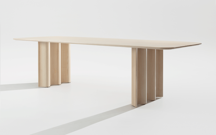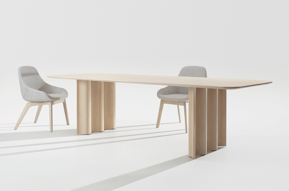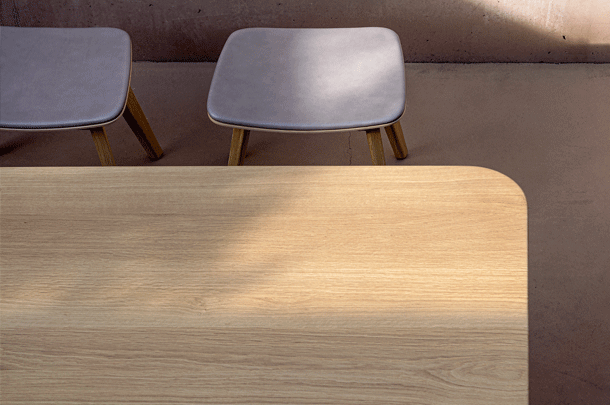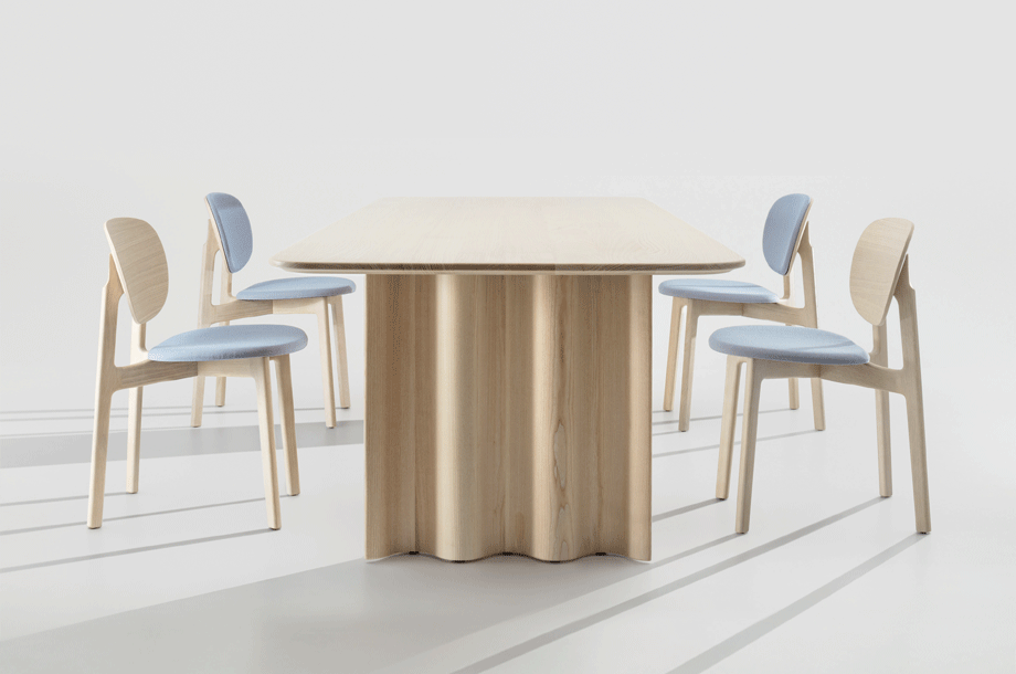 Just like a sculpture, CURTAIN toys with our perception – the symbolism of the wave increases all the more as the material qualities of the solid wood fade into the background. This harmonic symbiosis of form and material comes as a surprise, but also allows us to see the entire table as a self-restrained composition – rhythmically, the “curtains” create an atmosphere of floating serenity and inner calm. The dominant wave form was crafted from a solid block in a sculptural manner, carried out by latest CNC technology. The base is subsequently sanded by hand and oiled, bringing the flowing movement to life.