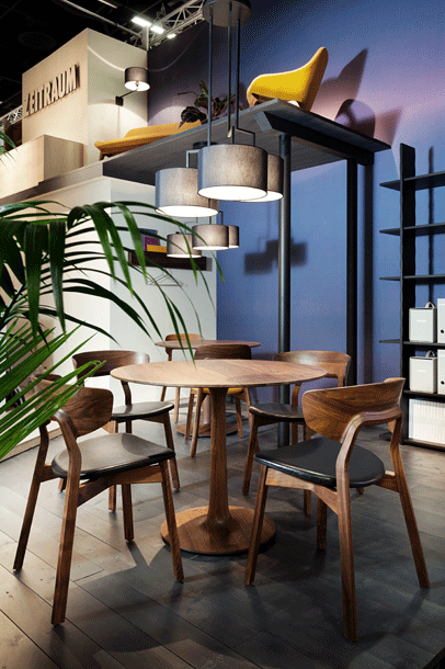 The archaic form of this table speaks for itself. It owes its unique identity to the feeling that it turns around its own axis. It is present in the room as a feature and fixed on its slim-line middle foot in solid wood. To all appearances, this round table has been carved from one piece of wood. Wherever you place it, TURNTABLE is always in the right place and is always a focus of attention.