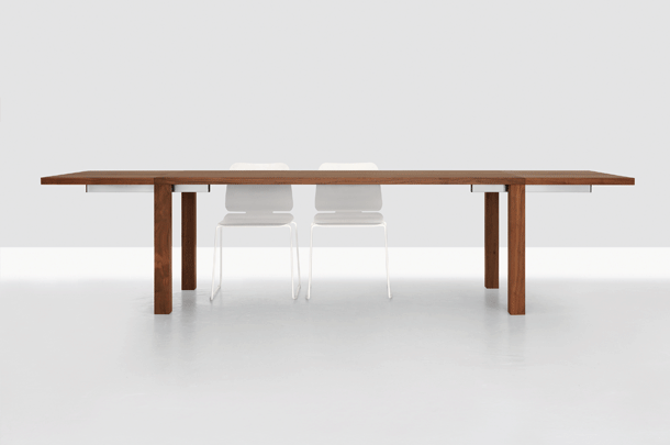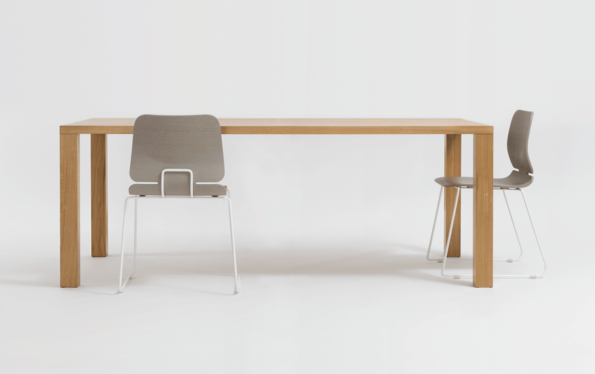 PJUR – table functionality in its purest form. The strong corner placed legs allow the table to assert itself in the room without dominating, while the clear design means it can adapt to any of its many uses at home or in the office. The frame free table top allows the maximum possible leg room.