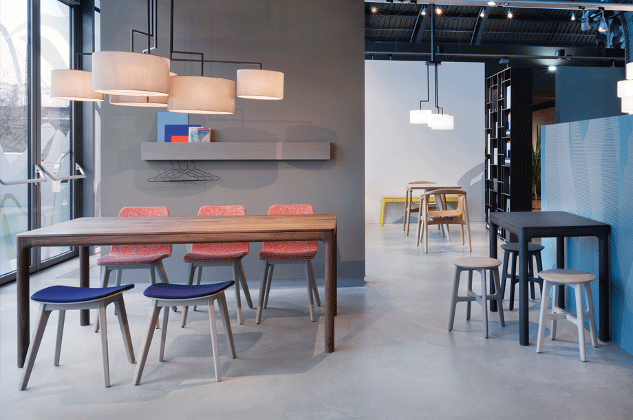Even as a large dining table it is light and serene with a pleasant appearance and ample legroom. A small M11 anchored to a larger unit quickly transforms into a longer table.